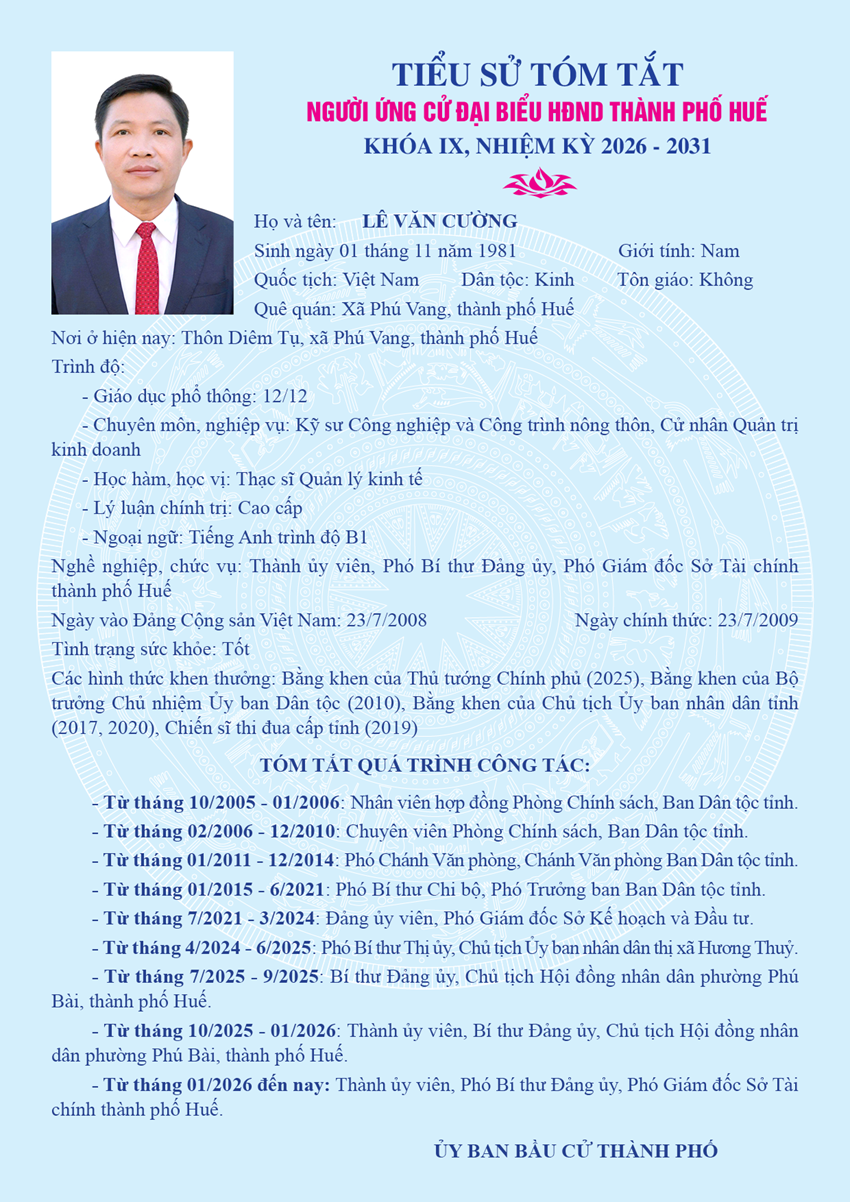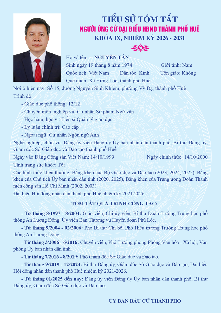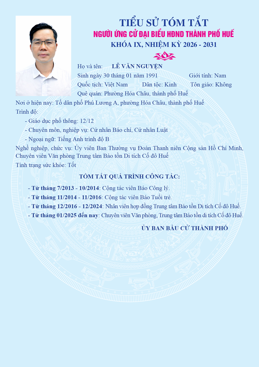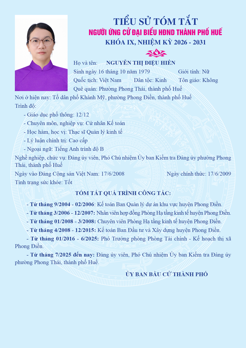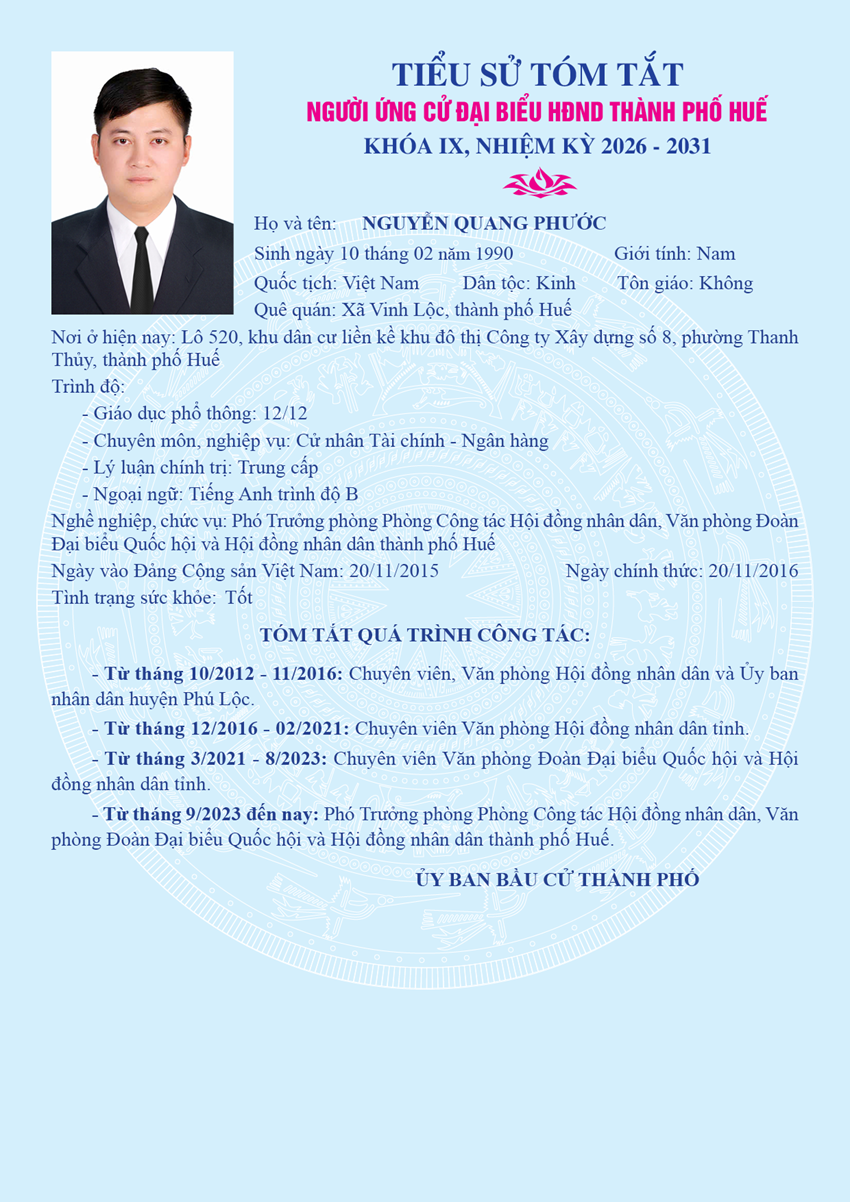 - Tổng số người ứng cử đại biểu Hội đồng nhân dân thành phố trong danh sách này là: 06 người;