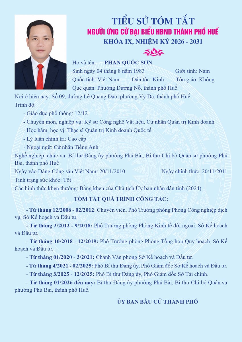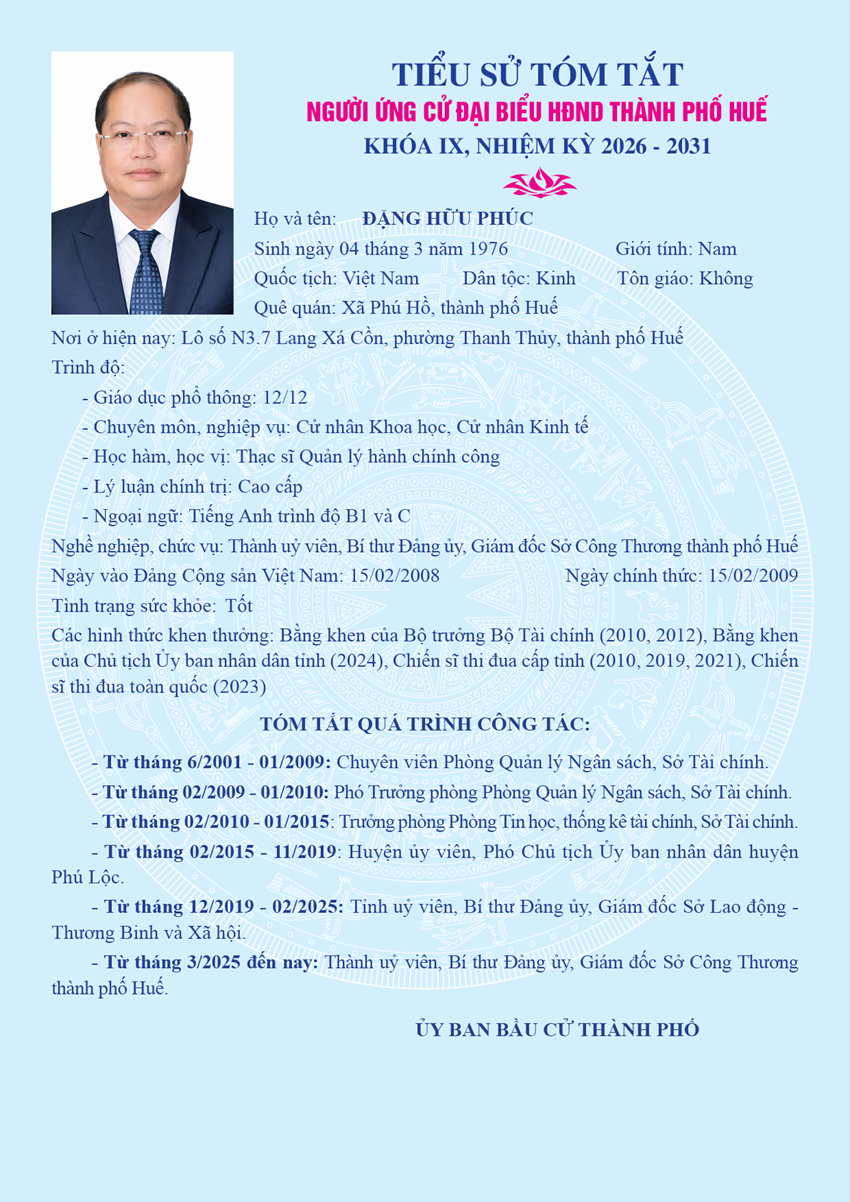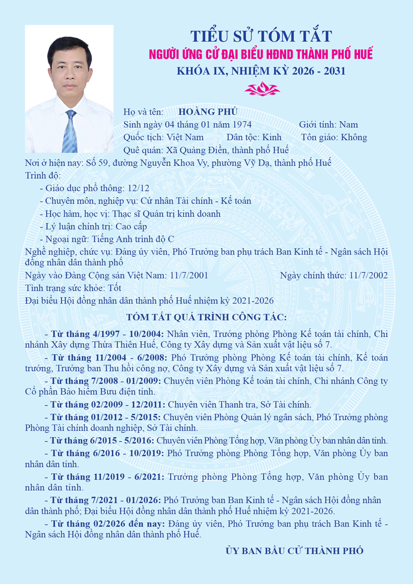 IV. ĐƠN VỊ BẦU CỬ SỐ 04: Gồm phường Phú Xuân.