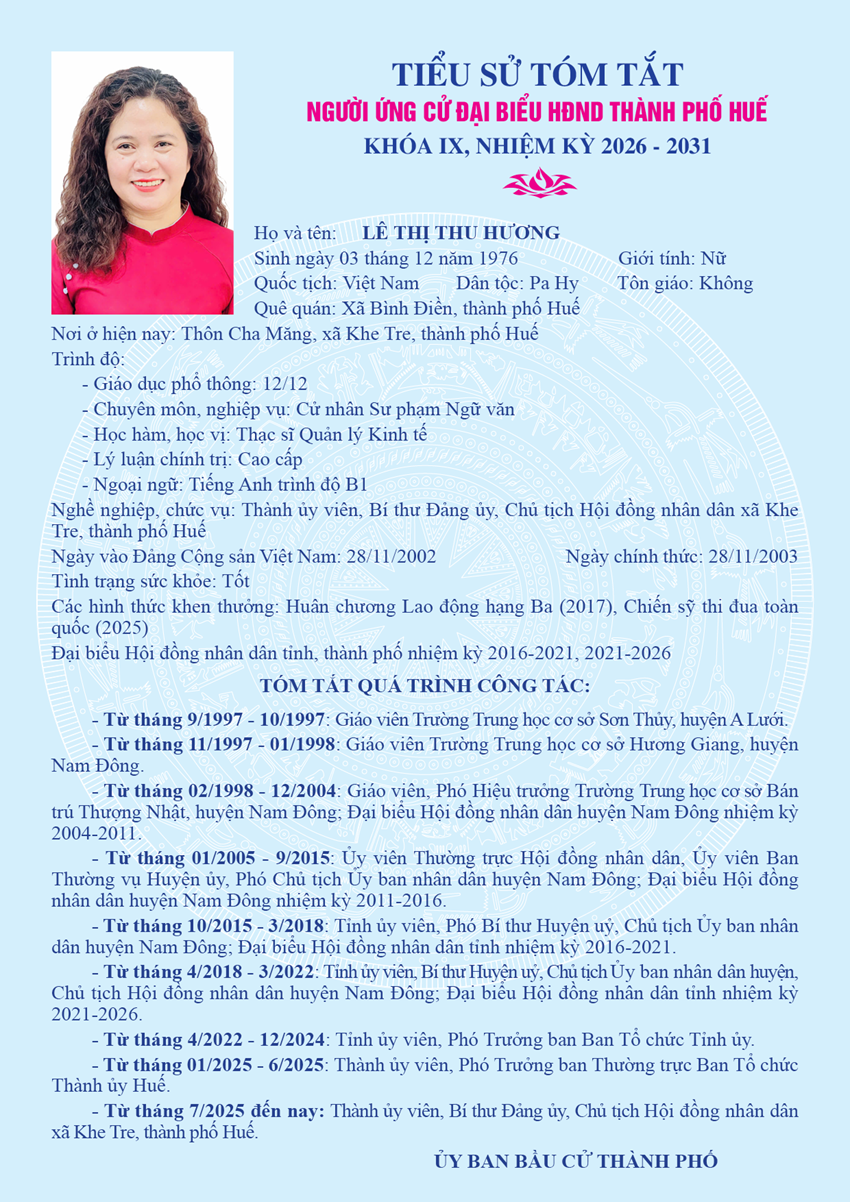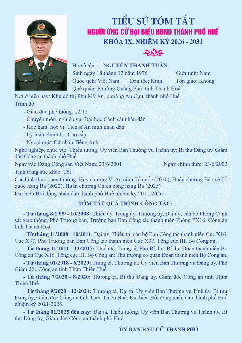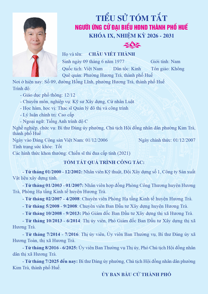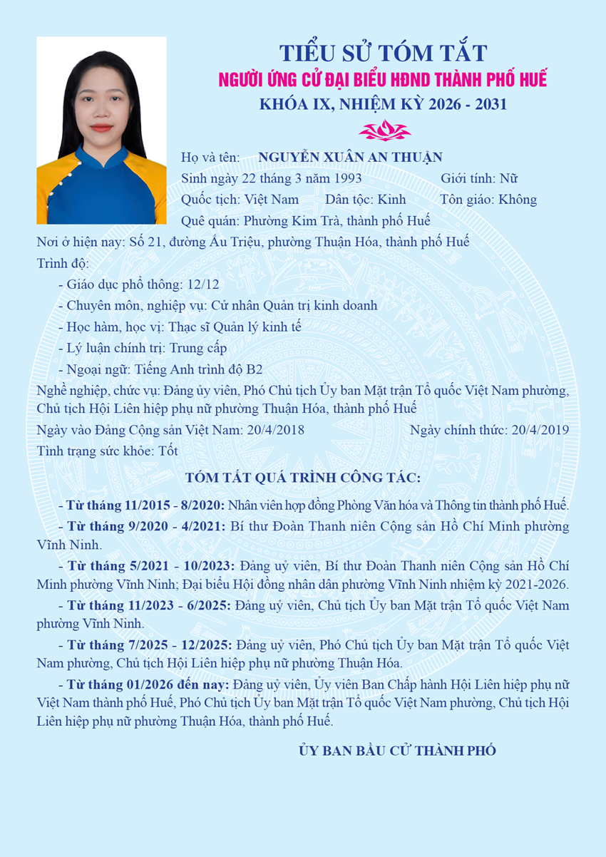 VII. ĐƠN VỊ BẦU CỬ SỐ 07: Gồm các phường: An Cựu, Thủy Xuân.