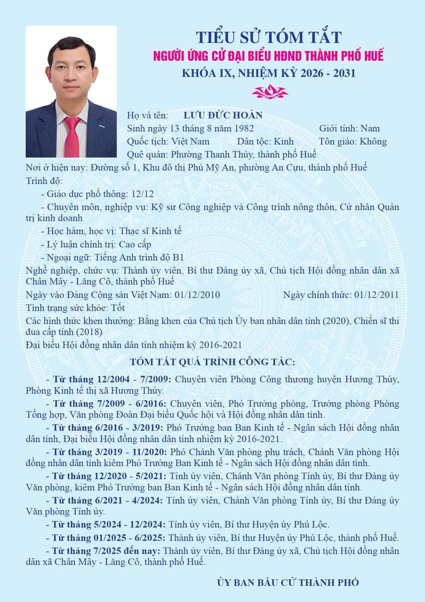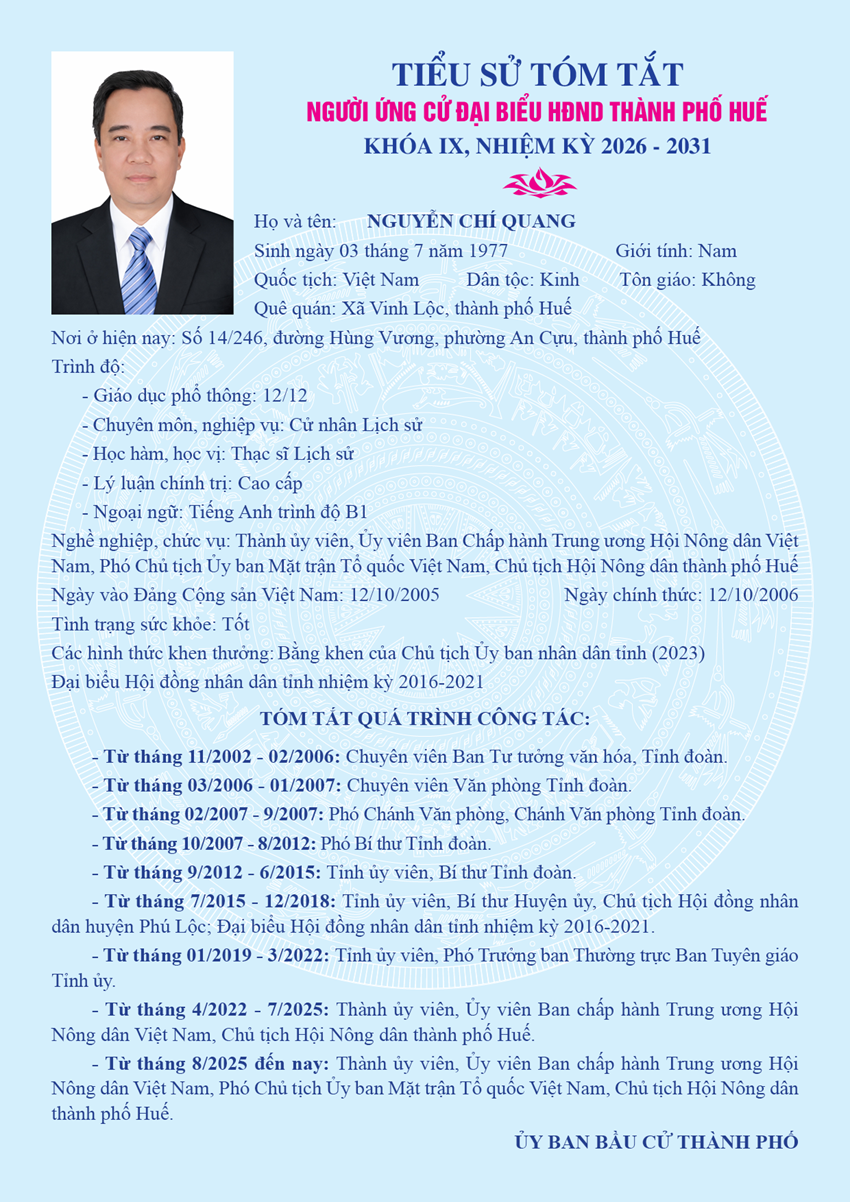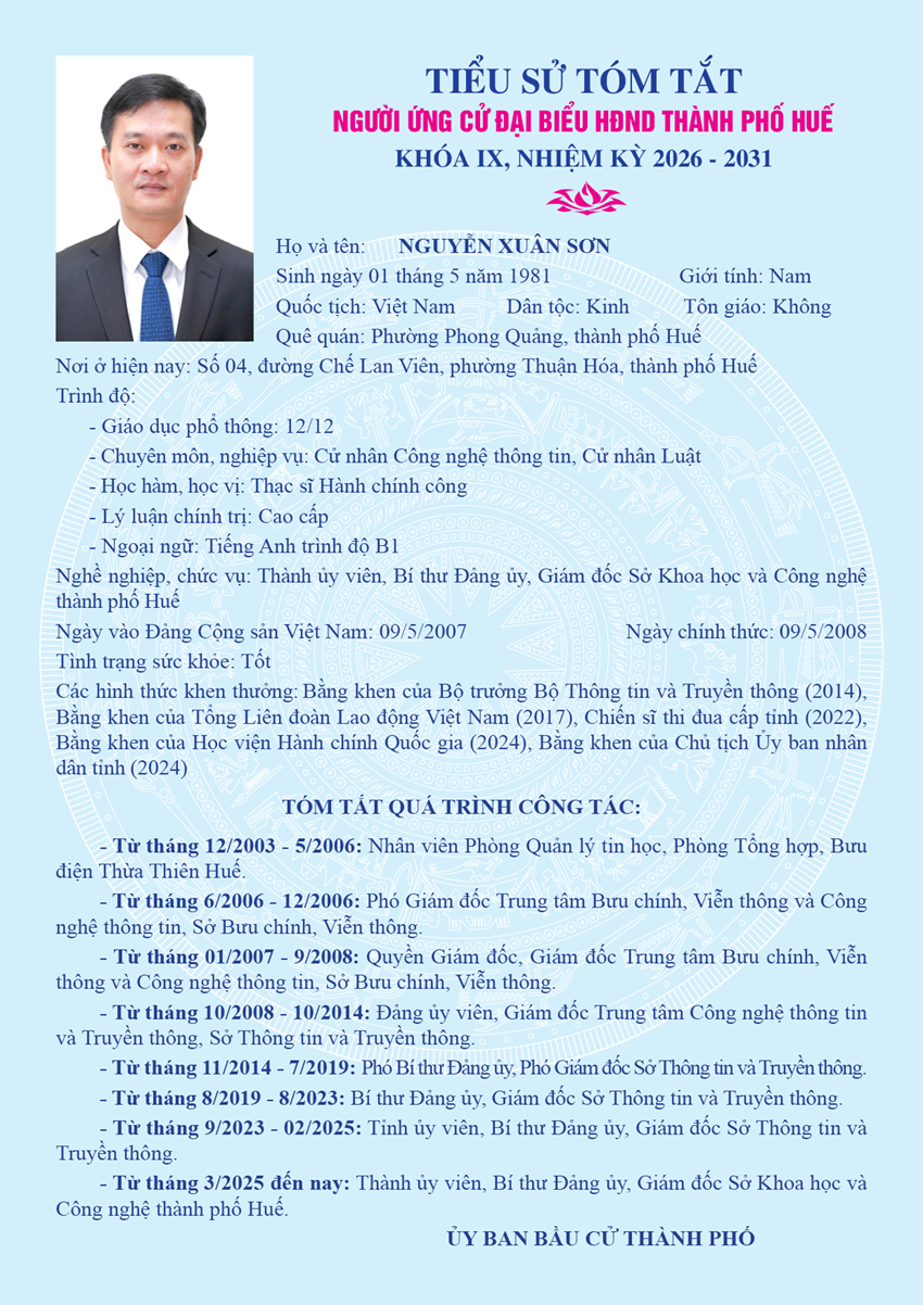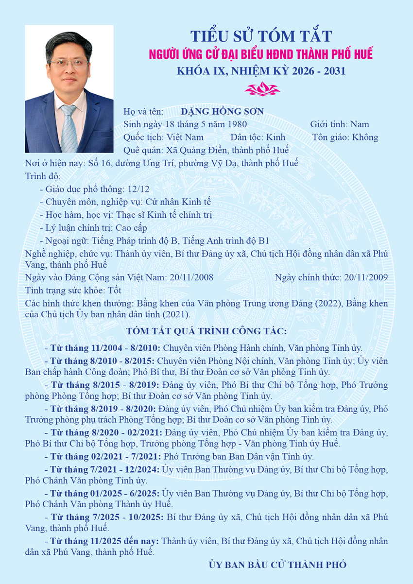 VII. ĐƠN VỊ BẦU CỬ SỐ 07: Gồm các phường: An Cựu, Thủy Xuân.