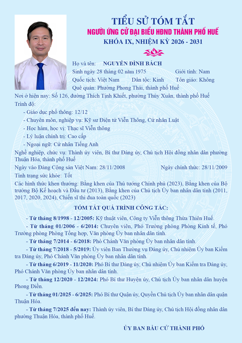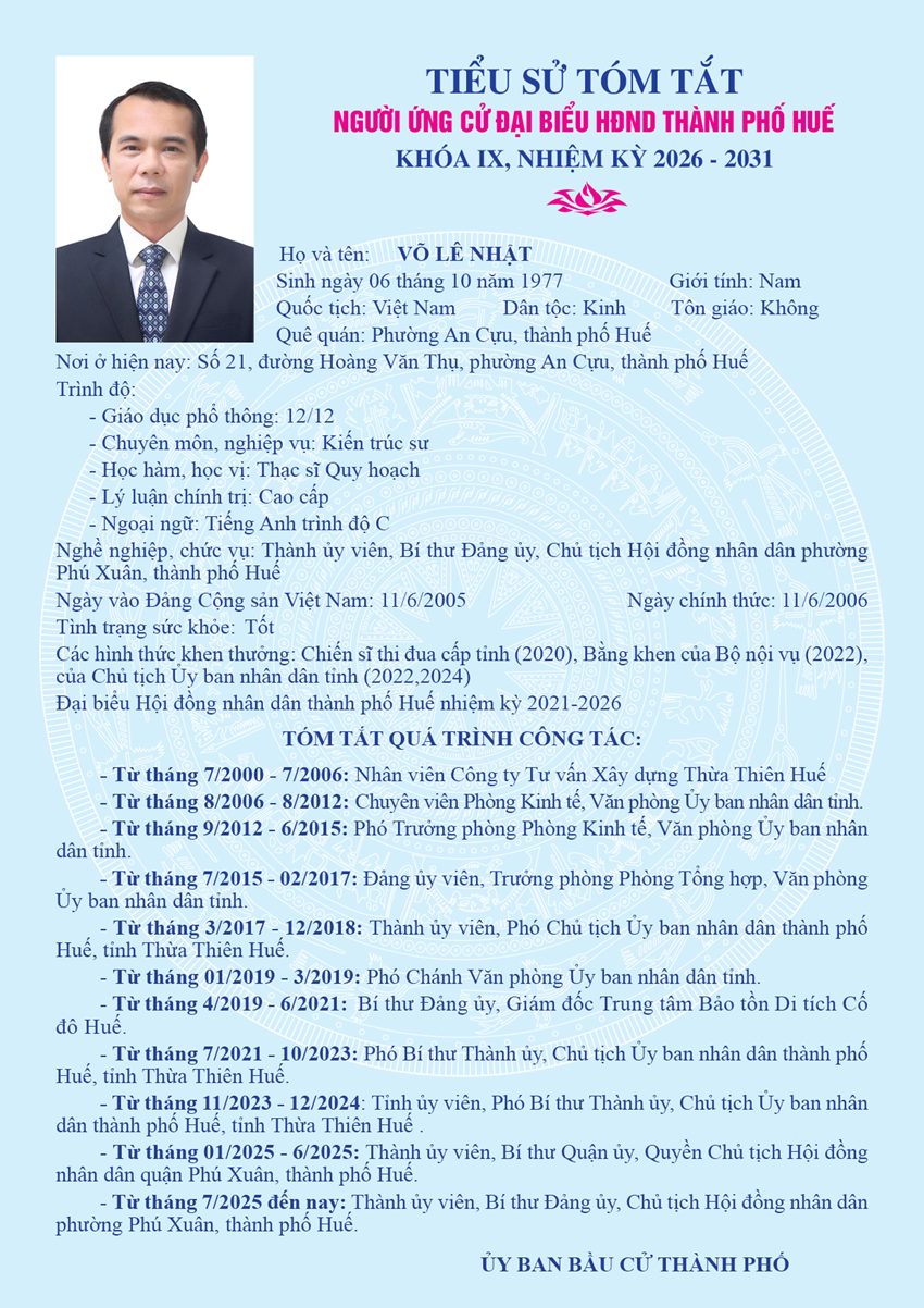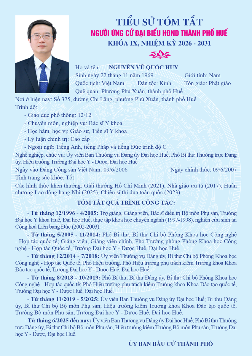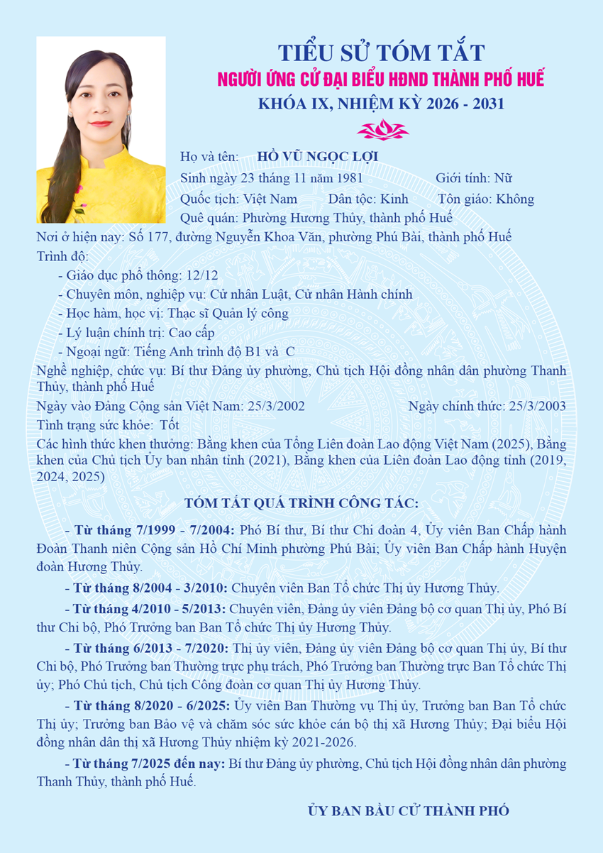 VI. ĐƠN VỊ BẦU CỬ SỐ 06: Gồm các phường: Vỹ Dạ, Thuận Hóa.