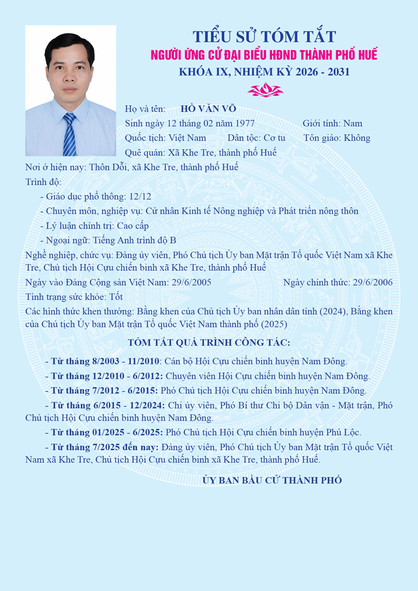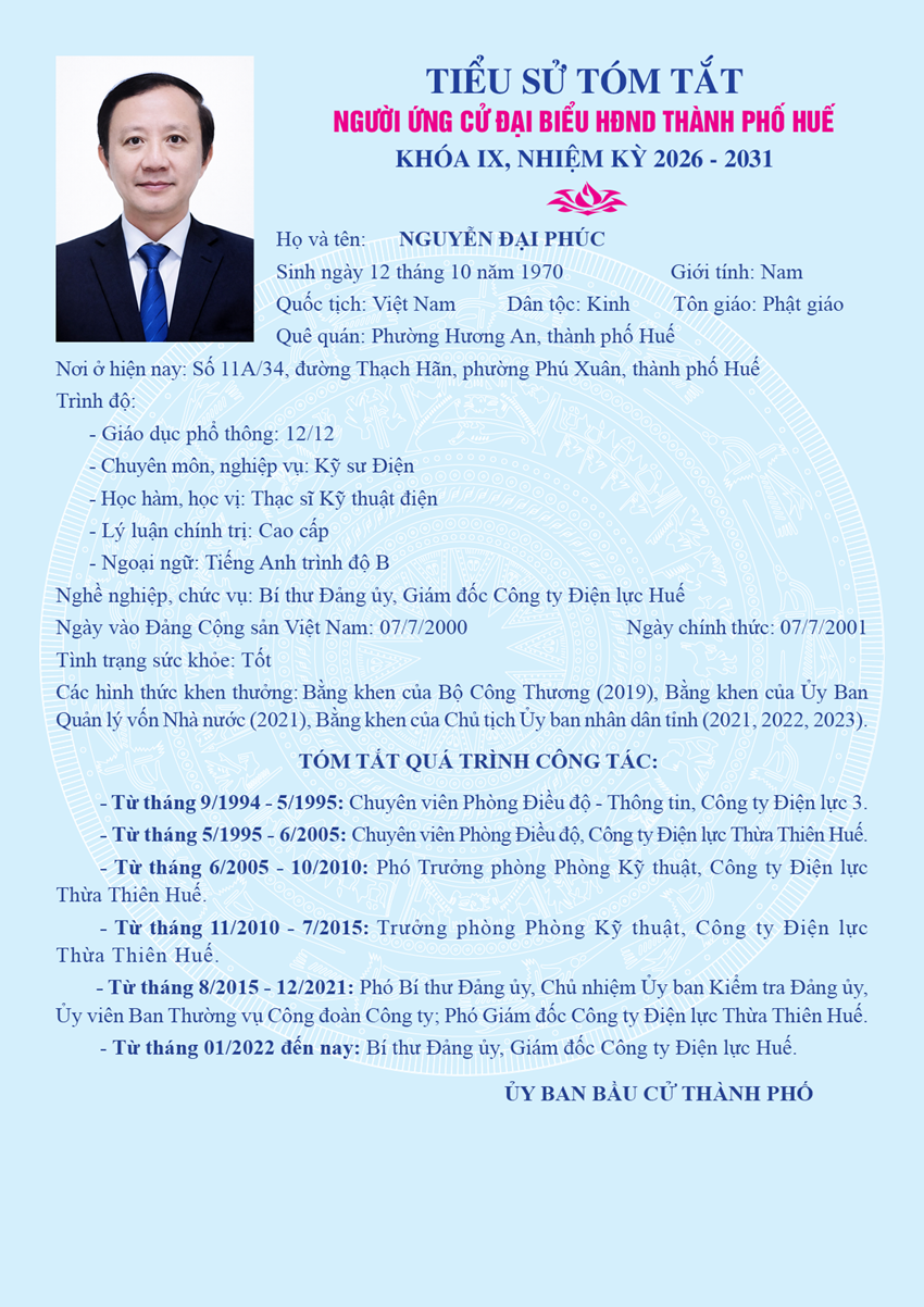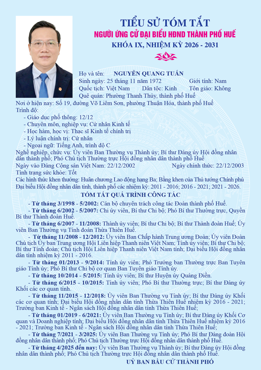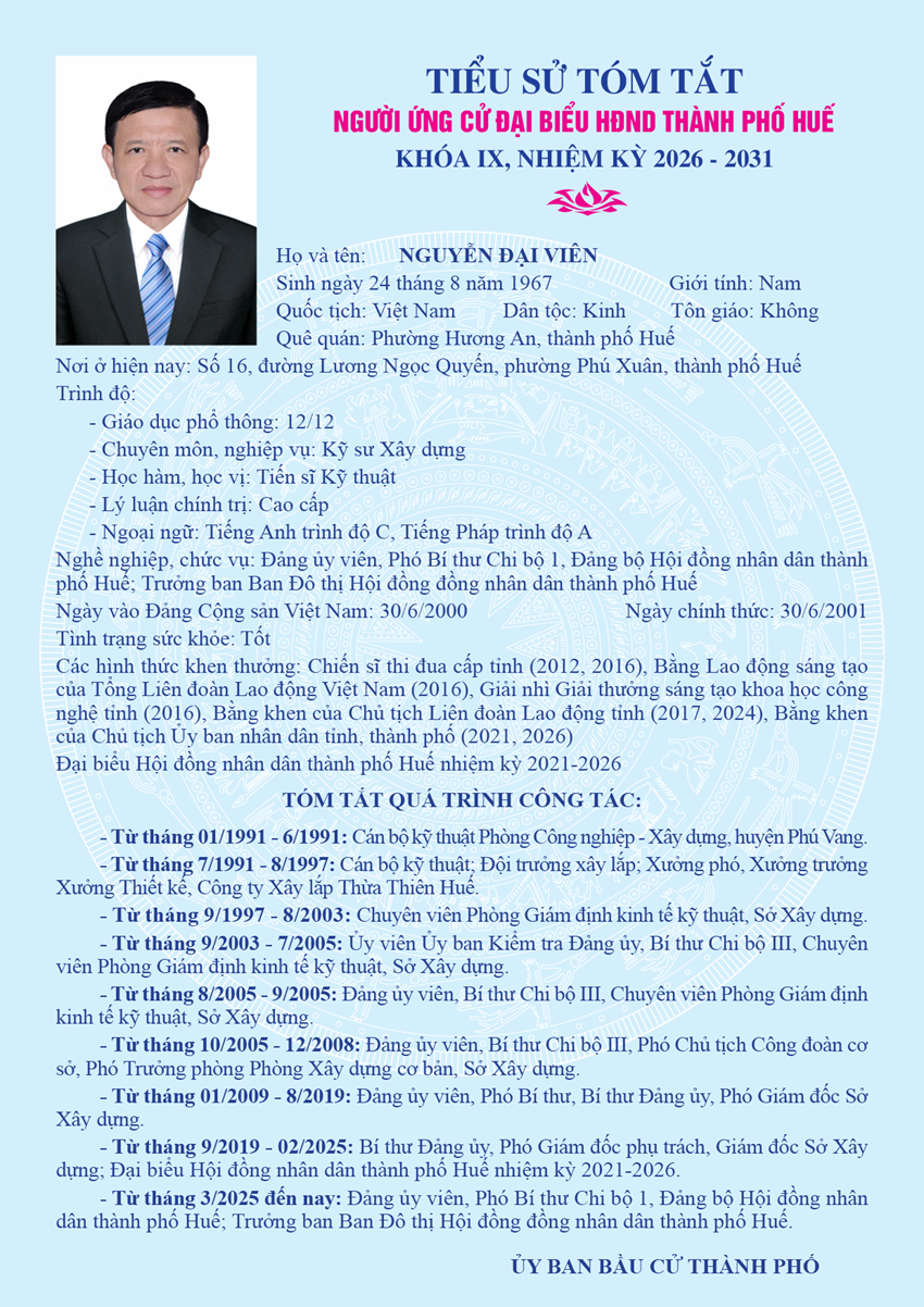 VI. ĐƠN VỊ BẦU CỬ SỐ 06: Gồm các phường: Vỹ Dạ, Thuận Hóa.