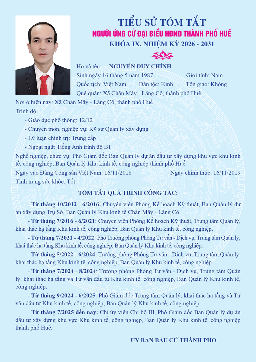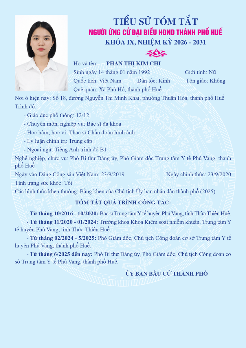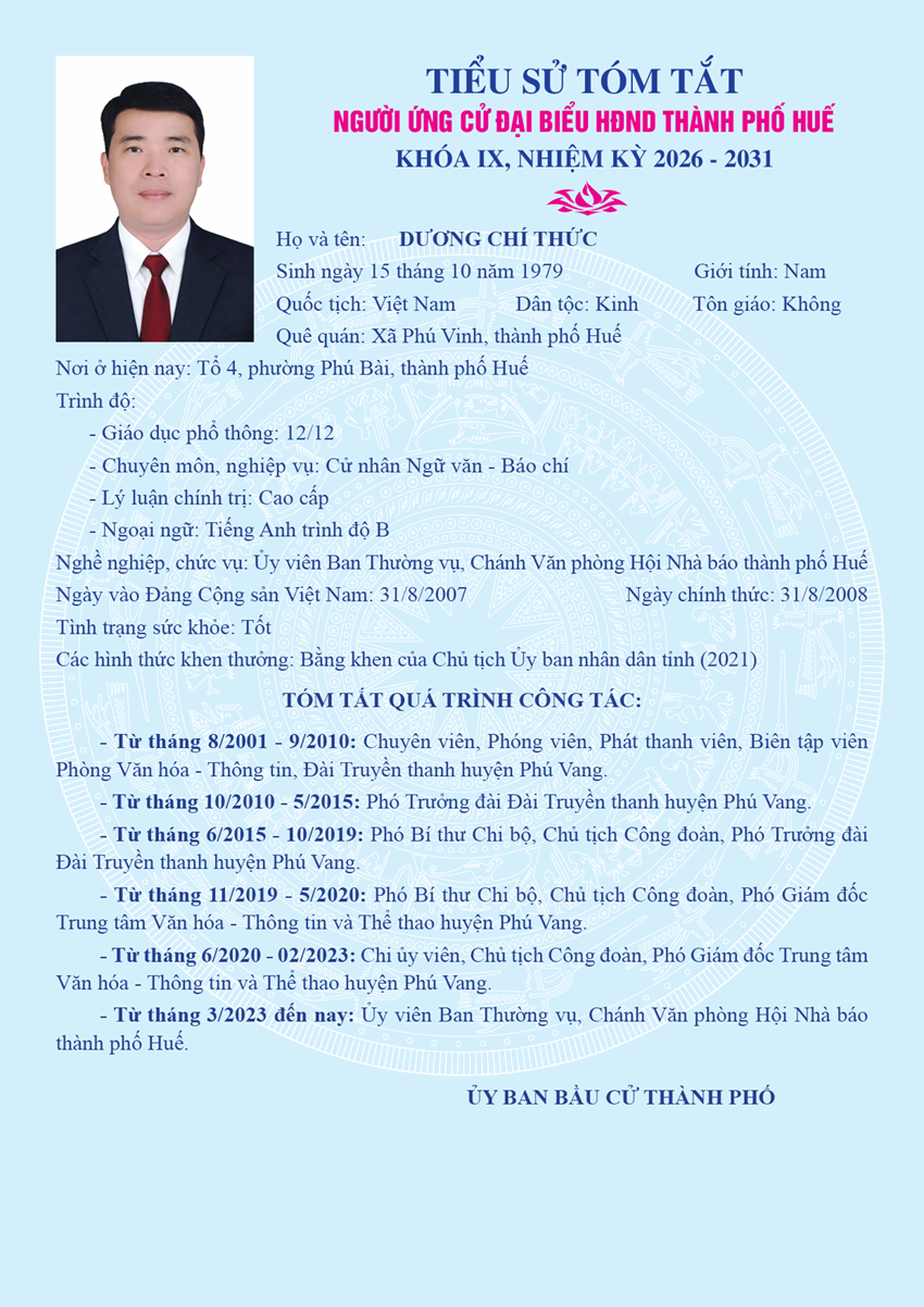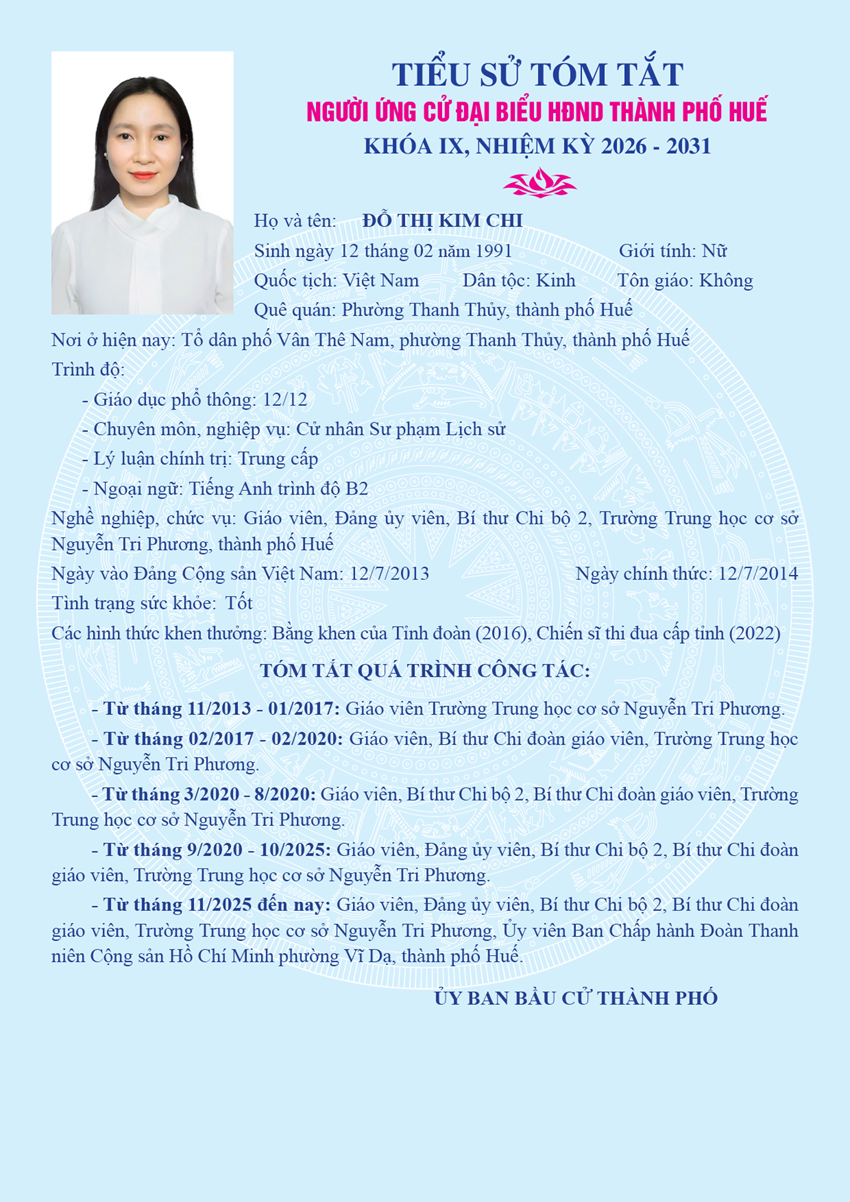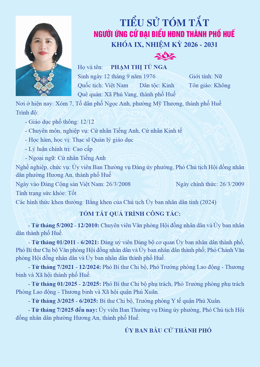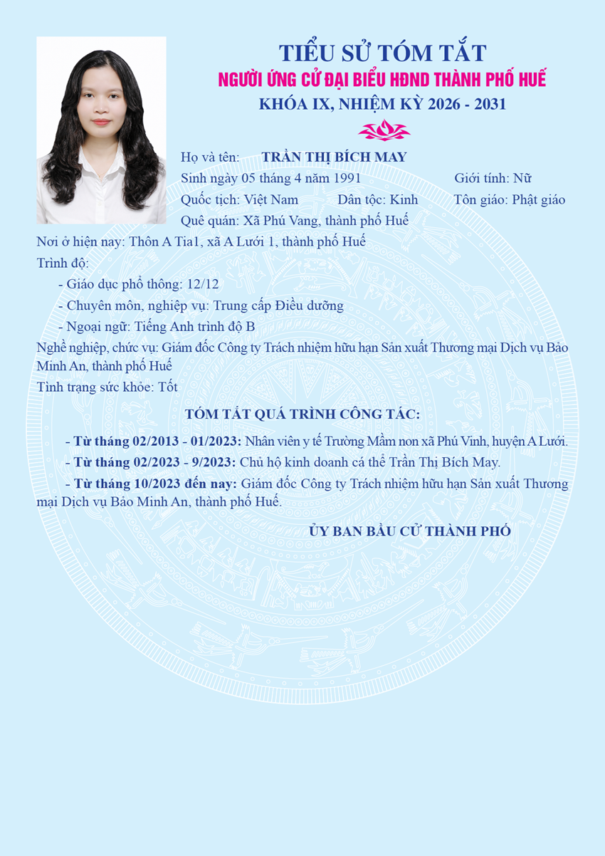 - Tổng số người ứng cử đại biểu Hội đồng nhân dân thành phố trong danh sách này là: 08 người.