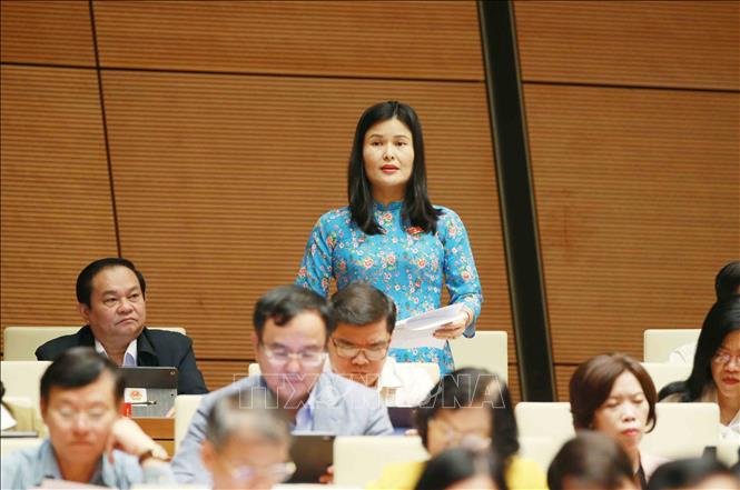 Đại biểu Quốc hội tỉnh Hà Tĩnh  - Bùi Thị Quỳnh Thơ phát biểu. Ảnh: Phương Hoa/TTXVN