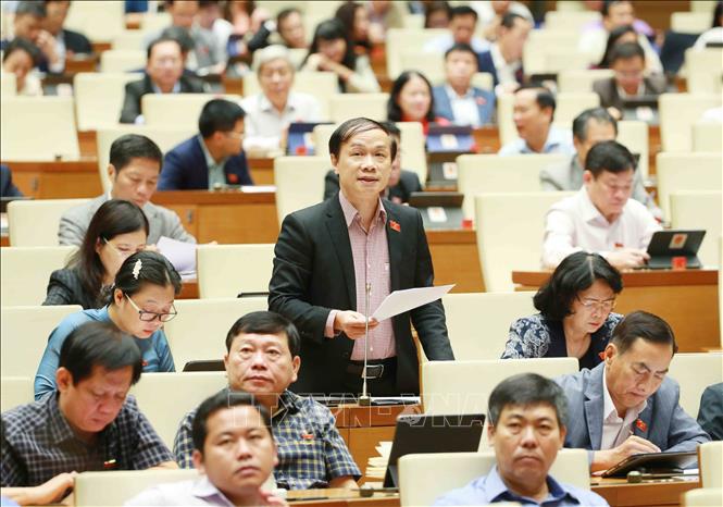 Đại biểu Quốc hội thành phố Hà Nội - Hoàng Văn Cường phát biểu. Ảnh: Phương Hoa/TTXVN