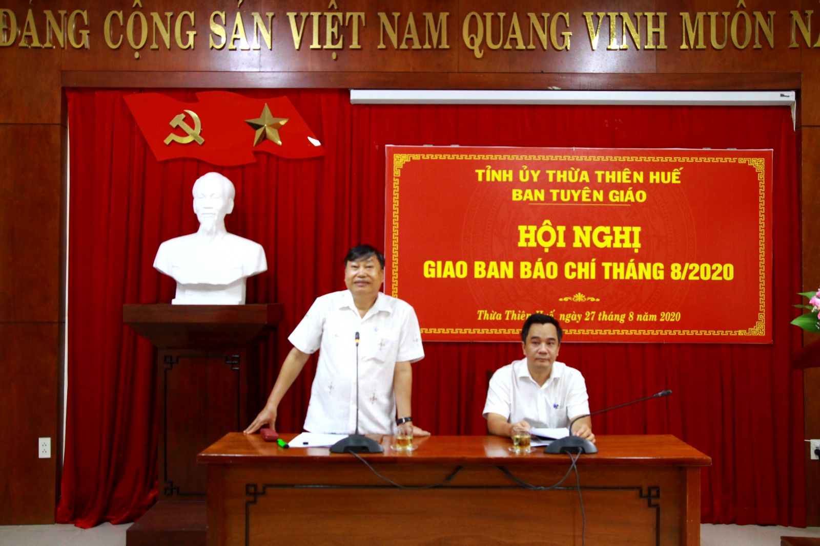 HNN.VN - Sáng 27/8, Ban Tuyên giáo Tỉnh ủy tổ chức hội nghị giao ban báo chí tháng 8/2020. Phó Bí thư Thường trực Tỉnh ủy Bùi Thanh Hà dự, phát biểu chỉ đạo tại hội nghị; UVTV Tỉnh ủy, Trưởng ban Tuyên giáo Tỉnh ủy Nguyễn Thái Sơn và Phó trưởng Ban Thường trực Ban Tuyên giáo Tỉnh ủy Nguyễn Chí Quang chủ trì hội nghị.