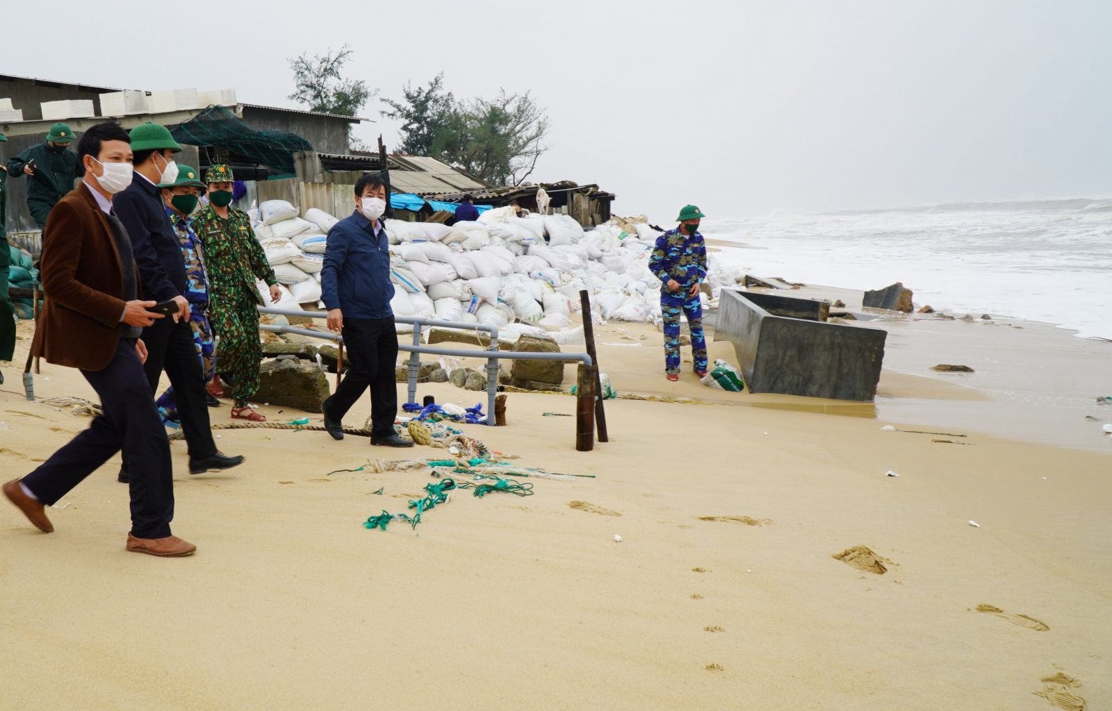 Kiểm tra khu vực sạt lở do biển xâm thực, Chủ tịch UBND tỉnh Nguyễn Văn Phương yêu cầu các lực lượng có phương án di dời, đảm bảo an toàn tính mạng người dân