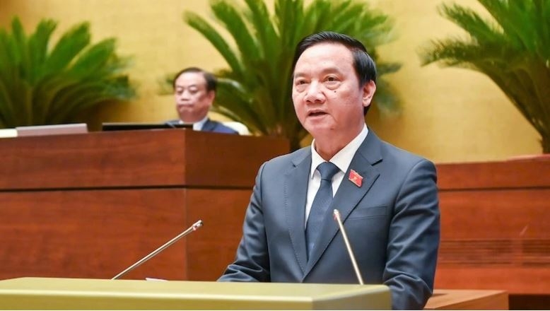 | Phó Chủ tịch Quốc hội Nguyễn Khắc Định trình bày tờ trình đề nghị Quốc hội xem xét, quyết định việc sửa đổi, bổ sung một số điều của Hiến pháp năm 2013 và tờ trình về việc thành lập Ủy ban dự thảo sửa đổi, bổ sung một số điều của Hiến pháp năm 2013. (Ảnh: NHÂN DÂN) |
