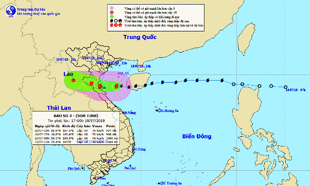 Dự báo trong 12 giờ tới, bão di chuyển theo hướng Tây, mỗi giờ đi được 20-25km; trong tối và đêm nay, 18/7, vùng tâm bão với sức gió mạnh cấp 8, giật cấp 10, sẽ ảnh hưởng trực tiếp đến khu vực ven biển các tỉnh từ Thái Bình đến Quảng Bình.