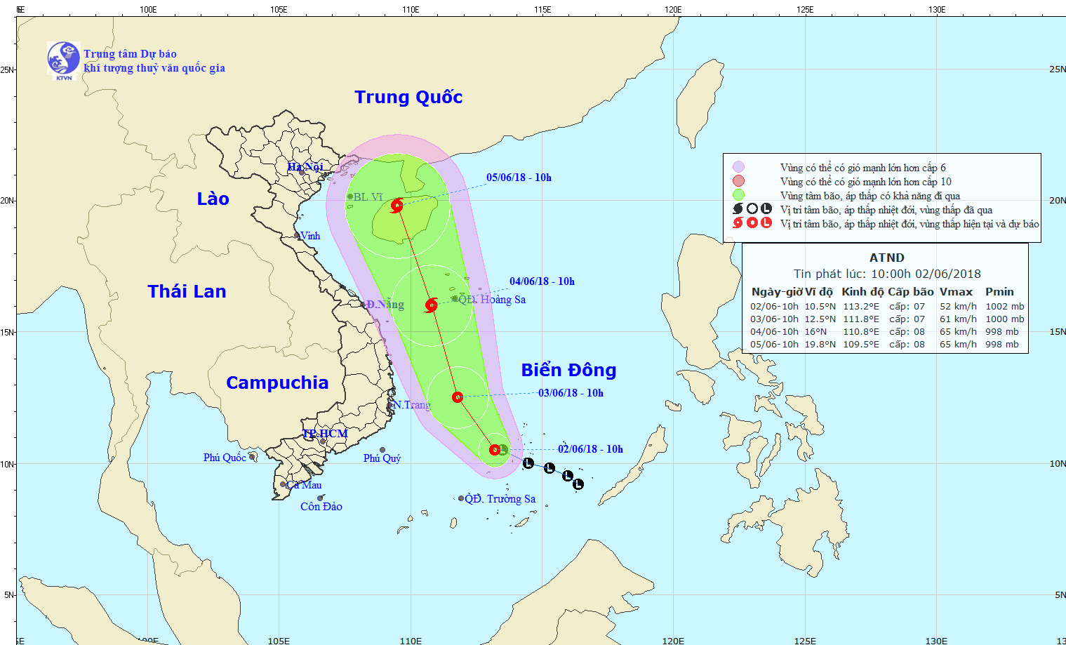 HNN.VN - Theo Đài Khí tượng Thủy văn tỉnh, do ảnh hưởng của vùng áp thấp, có khả năng mạnh lên thành áp thấp nhiệt đời, từ ngày 3-4/6, ở vùng biển giữa và nam Biển Đông sẽ có mưa rào và dông, sét rất mạnh.