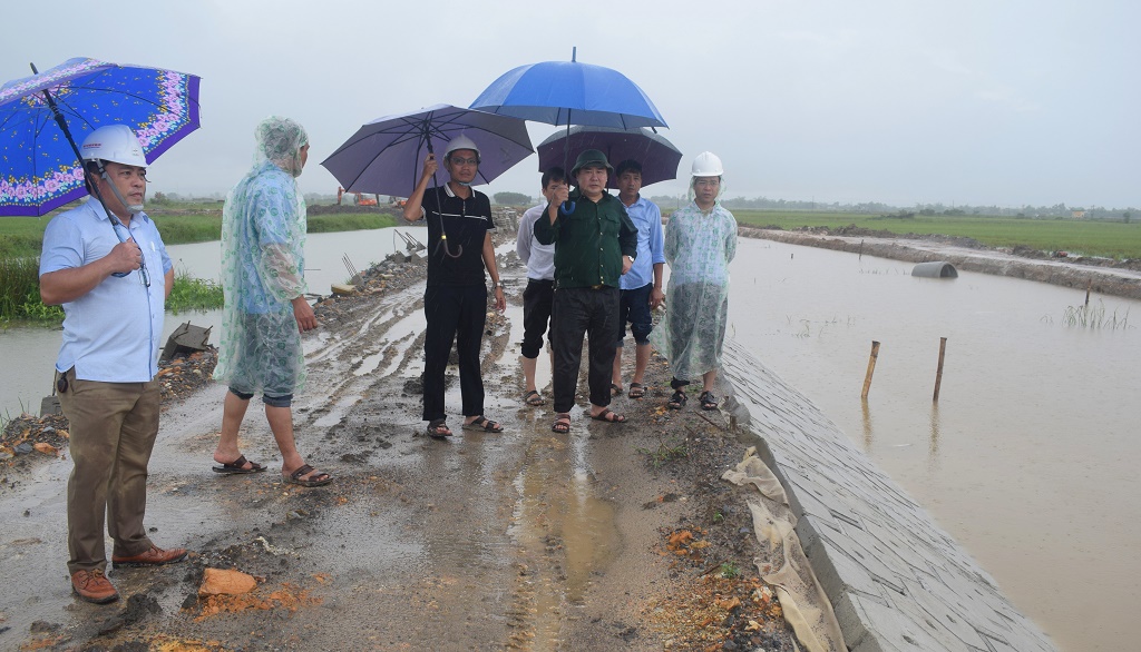 Lãnh đạo huyện Phong Điền kiểm tra công tác phòng chống cơn bão Noru tại Hói Nậy, xã Phong Chương