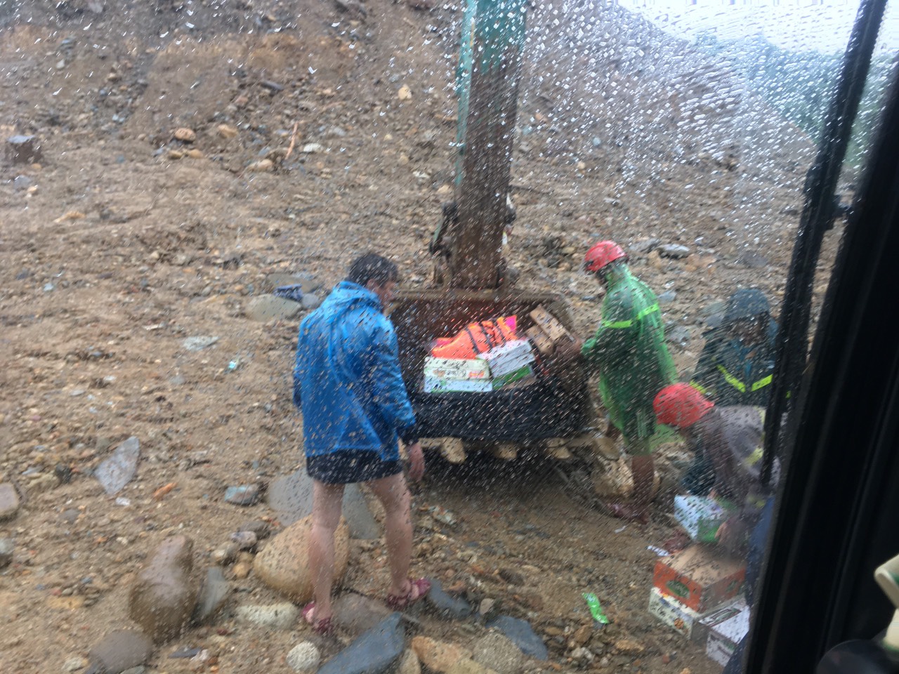 Thời tiết khu vực Phong Xuân vẫn có mưa to, gây trở ngại cho công tác cứu hộ