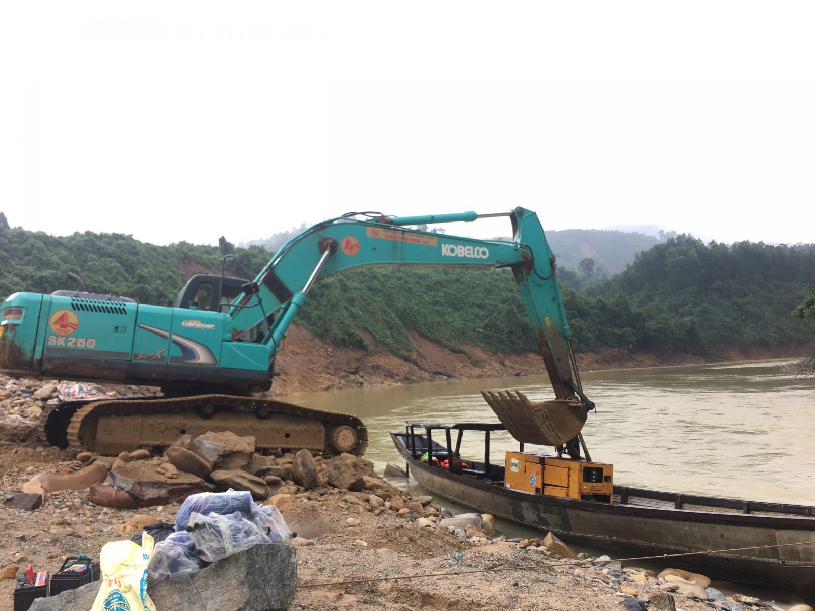 Hai máy bơm nước công suất lớn cũng được Công an tỉnh đưa lên Rào Trăng 3 bằng đường thủy để hỗ trợ xịt trôi khối đất đá trên bề mặt giúp tìm kiếm các nạn nhân.