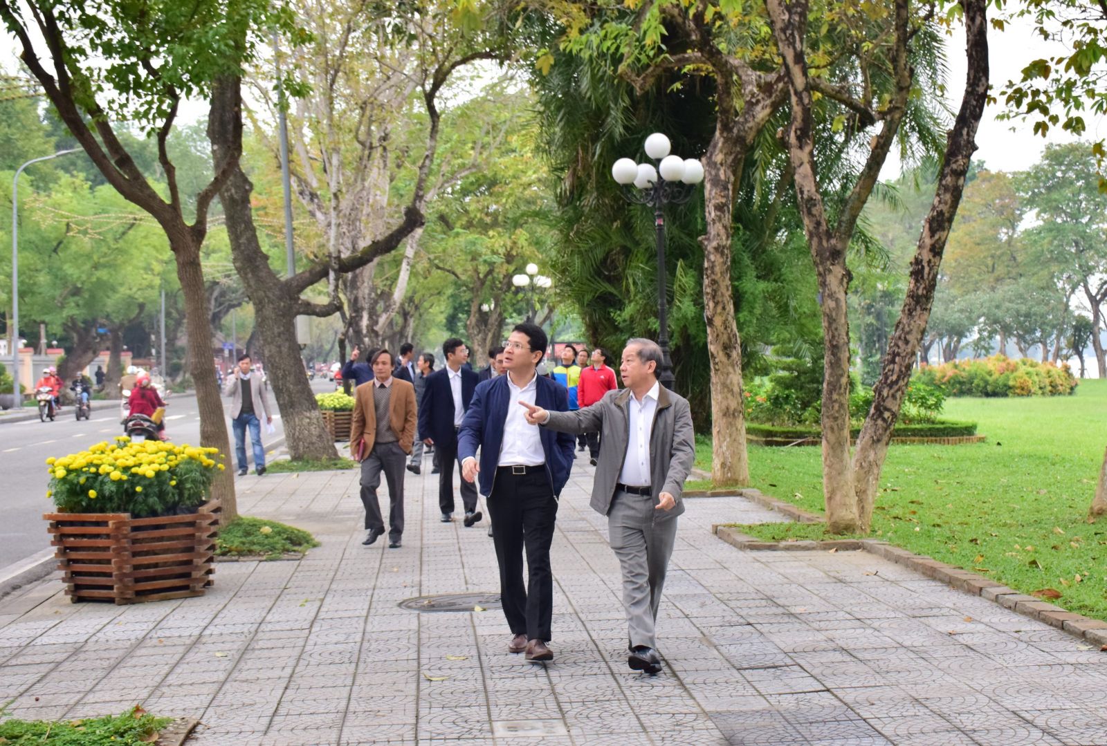 Chủ tịch UBND tỉnh đã đi kiểm tra một số tuyến đường chính như Lê Lợi, Trần Hưng Đạo, tuyến đi bộ dọc hai bờ sông Hương, các công viên cây xanh trên địa bàn TP. Huế.