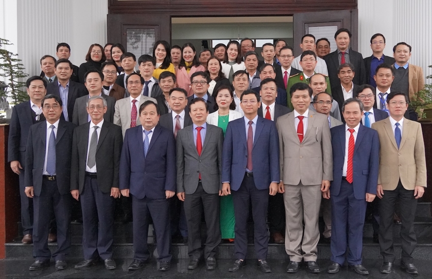 | Bí thư Thành ủy Lê Trường Lưu chụp hình lưu niệm với Ban Chấp hành Đảng bộ huyện Phú Lộc |