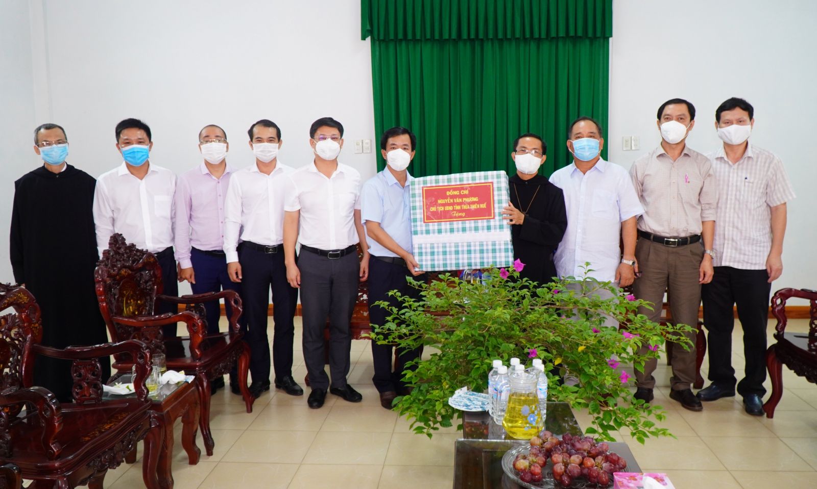 Đoàn lãnh đạo UBND tỉnh tặng quà đến Bề trên Đan viện Thiên An