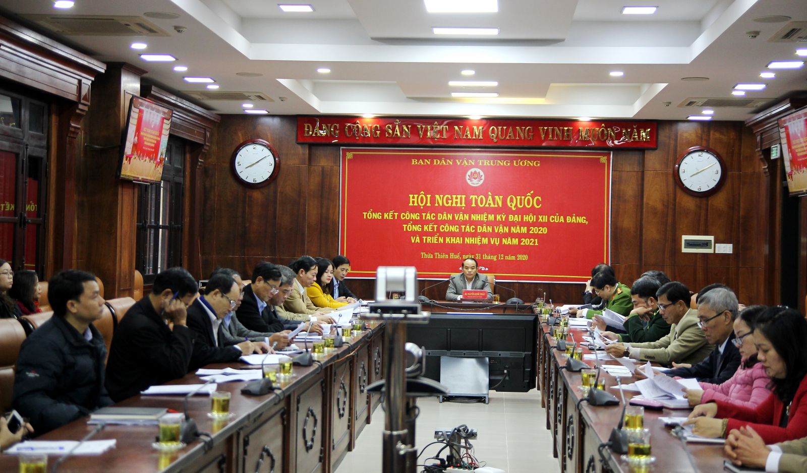 Ủy viên Bộ Chính trị, Thường trực Ban Bí thư Trần Quốc Vượng dự và chỉ đạo hội nghị. Ủy viên Bộ Chính trị, Bí thư Trung ương Đảng, Trưởng ban Dân vận Trung ương Trương Thị Mai chủ trì tại điểm cầu Ban Dân vận Trung ương. Phó Bí thư Thường trực Tỉnh ủy Nguyễn Quốc Đoàn chủ trì tại điểm cầu Thừa Thiên Huế.