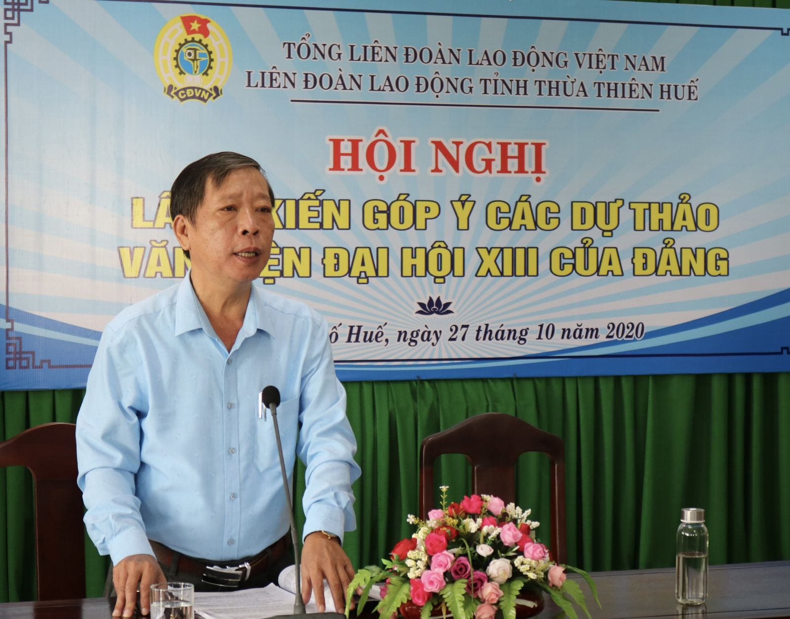 Tại hội nghị, Phó Chủ tịch LĐLĐ tỉnh Trần Quang Vinh gợi ý, các ý kiến góp ý cần tập trung vào những vấn đề chung trong các văn kiện trình Đại hội XIII của Đảng như chủ đề, phương châm chỉ đạo, mục tiêu, những dấu ấn nổi bật trong thực hiện Nghị quyết Đại hội XII; nguyên nhân, bài học kinh nghiệm; quan điểm chỉ đạo, định hướng phát triển đất nước giai đoạn 2021 - 2030, tầm nhìn đến năm 2045 xuất phát từ thực tiễn triển khai tại địa phương, cơ quan, đơn vị, trong đó có các vấn đề về tổ chức Công đoàn, đời sống người lao động, phát triển kinh tế…