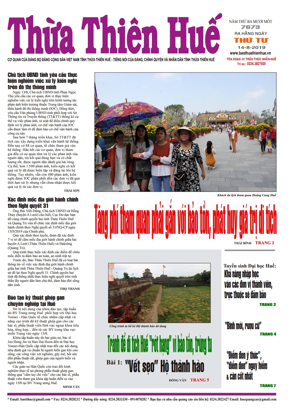 Đón đọc Báo Thừa Thiên Huế ngày 14/8