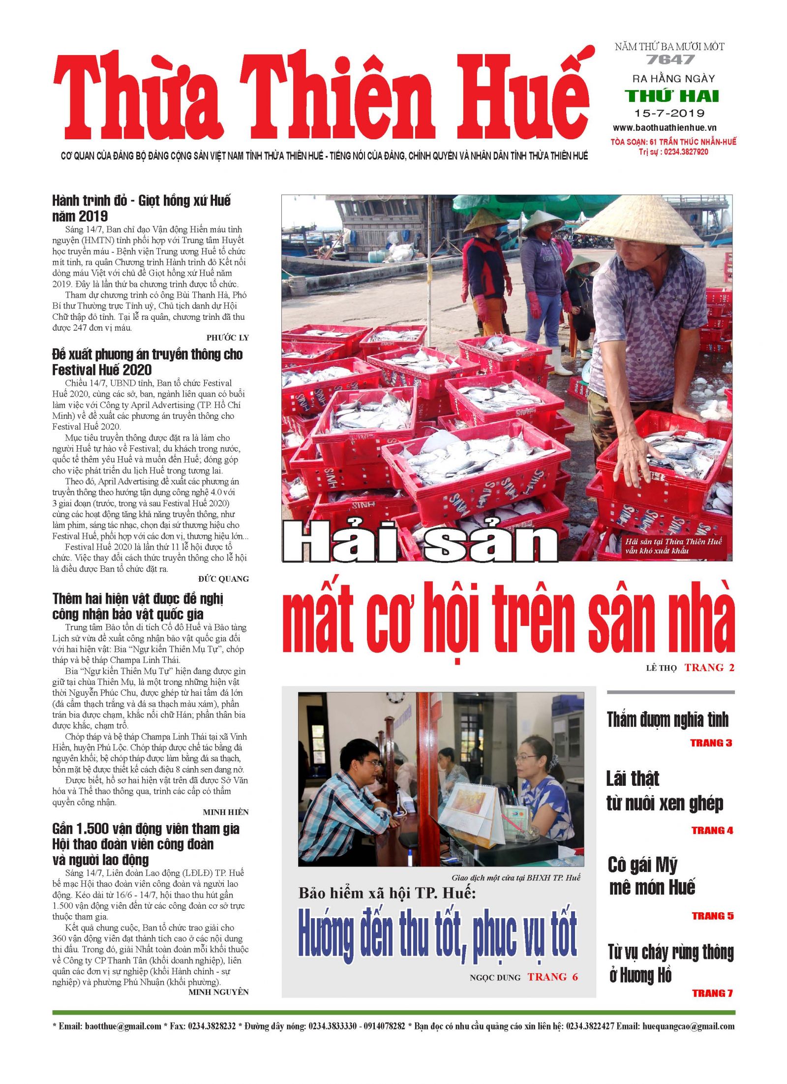 Ảnh bìa Báo Thừa Thiên Huế phát hành ngày 15/7