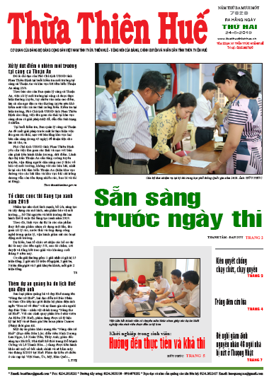 Một trong những sự kiện thời sự thu hút sự quan tâm của bạn đọc là Kỳ thi THPT Quốc gia năm 2019 chính thức bắt đầu từ ngày 25-27/6. Bài viết “Sẵn sàng trước ngày thi” trên trang 2 Báo Thừa Thiên Huế phát hành ngày 24/6 “mách nước” cho thí sinh những kinh nghiệm cần thiết để có kỳ thi thành công.