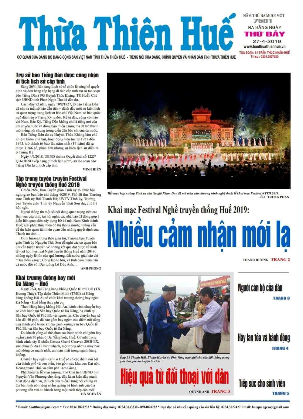 Đón đọc Báo Thừa Thiên Huế số 7581, ra ngày thứ bảy 27/4