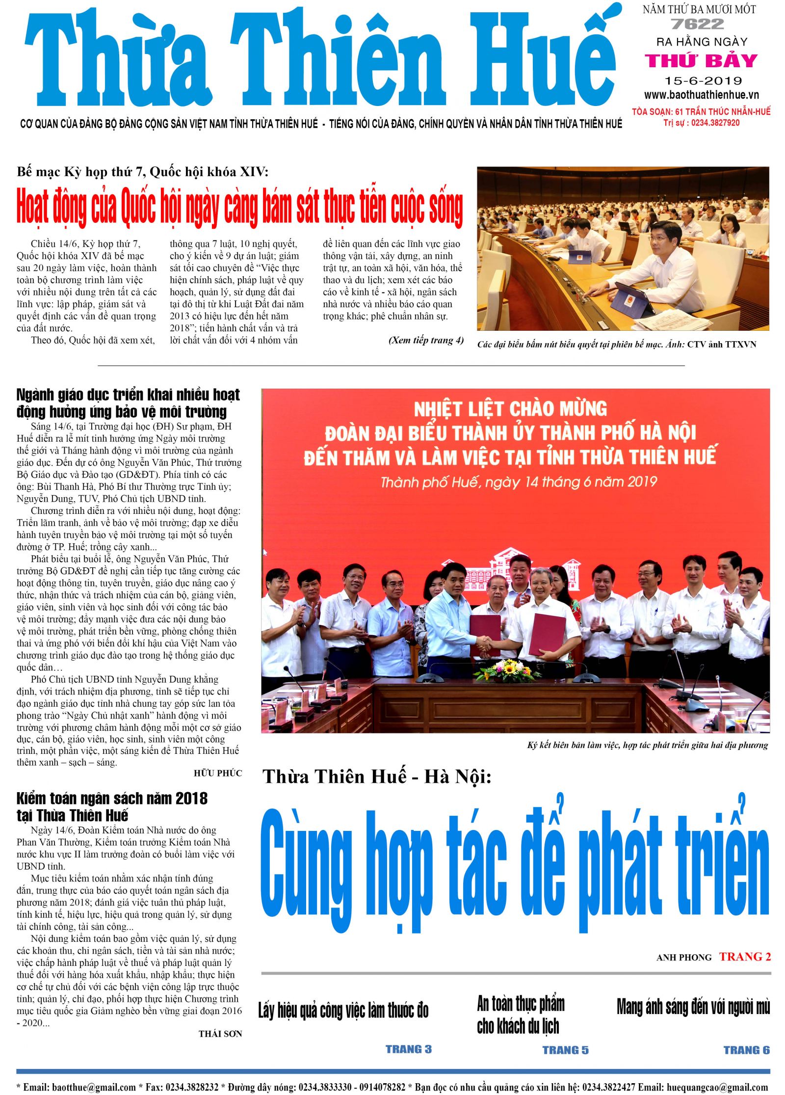 Trang 1 báo Thừa Thiên Huế số 7622 ra ngày 15/6