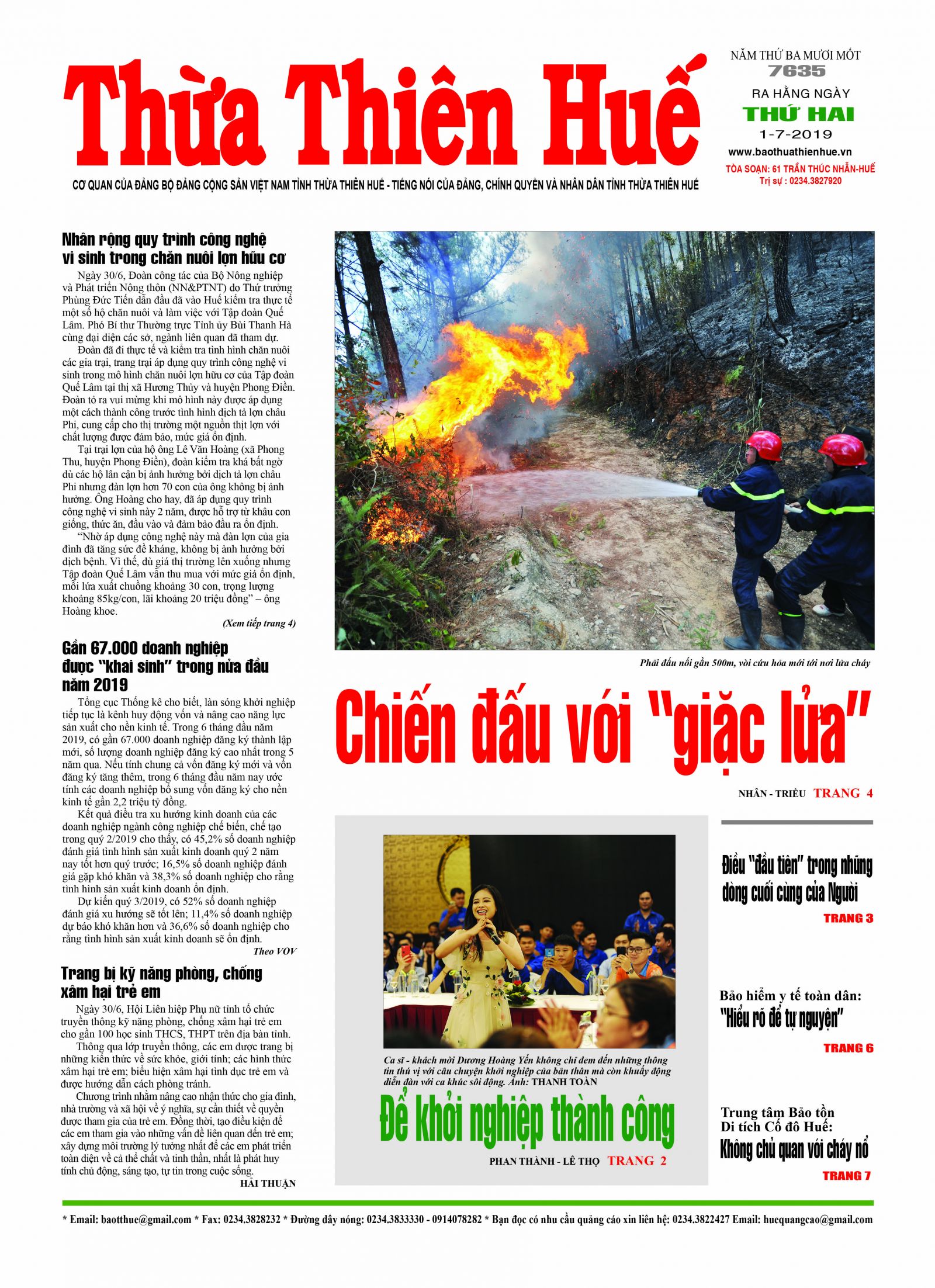 Trang 1 báo Thừa Thiên Huế ngày 1/7/2019