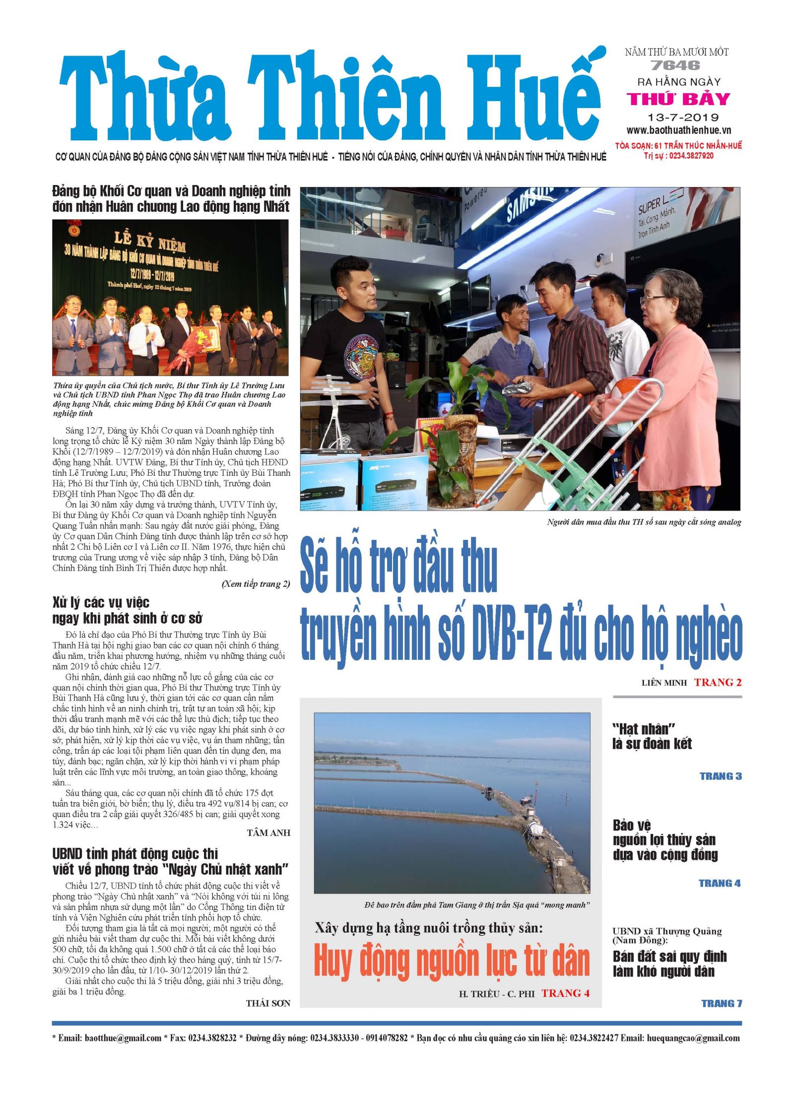 Trang 1 Báo Thừa Thiên Huế thứ bảy ngày 13/7