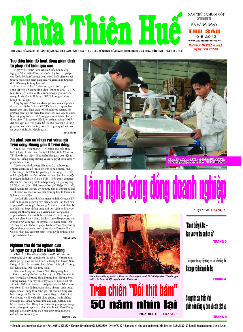 Lắng nghe cộng đồng doanh nghiệp (trang 2) là thông tin khẳng định từ phía Phó Bí thư Tỉnh ủy, Chủ tịch UBND tỉnh, Trưởng đoàn ĐBQH tỉnh trong bài trả lời phỏng vấn của Báo Thừa Thiên Huế. Chủ tịch UBND tỉnh nói: “Tôi muốn sự cộng tác, phản ánh đầy đủ nhất từ doanh nghiệp (DN). Hy vọng chúng ta có môi trường đầu tư thông thoáng, với phương châm: Nhanh hơn - Đơn giản hơn – Thân thiện”.