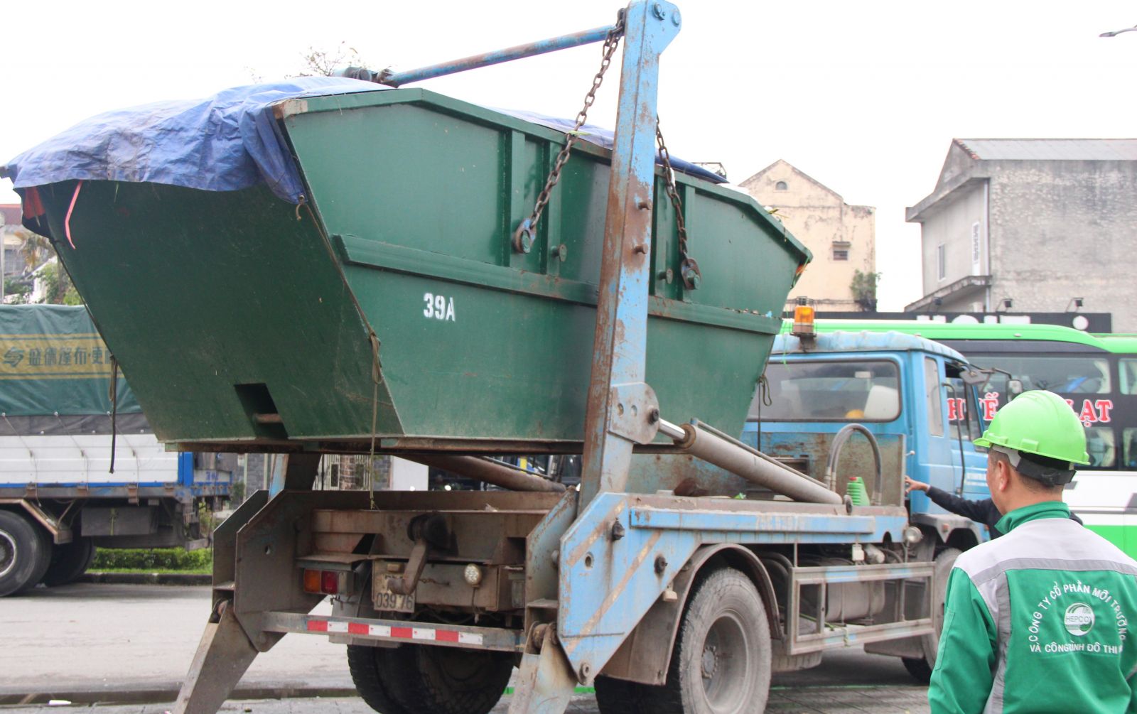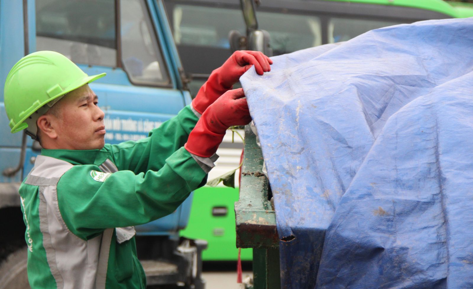 Phủ bạt kín thùng rác để quá trình di chuyển không để rơi vãi xuống đường