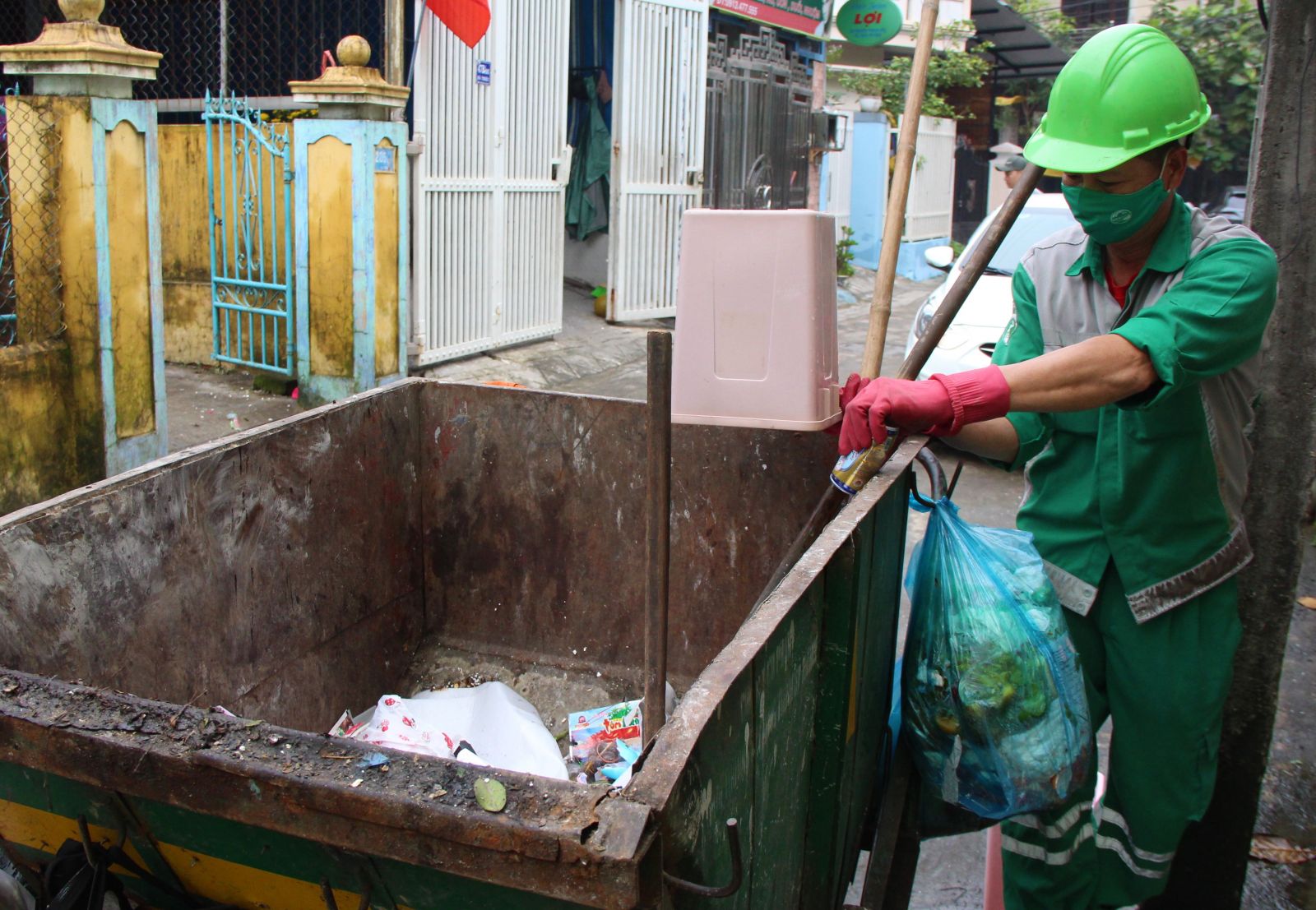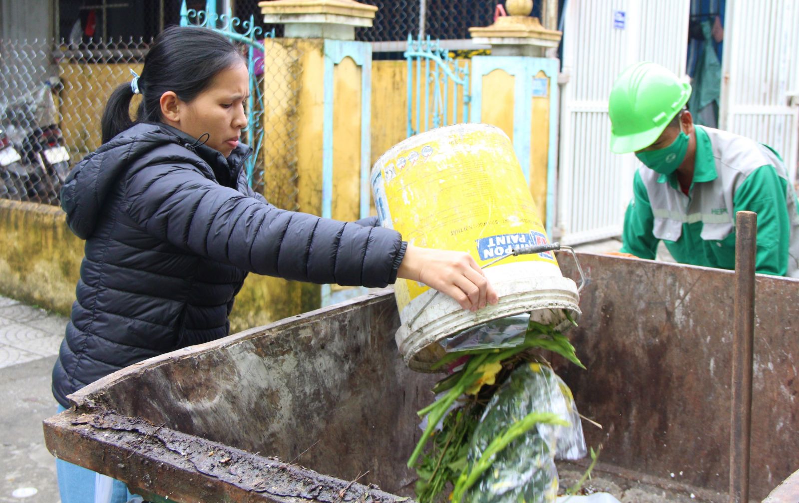 Việc người dân chờ xe rác đi ngang qua mới đưa rác đổ trực tiếp vào xe thu gom phần nào giảm áp lực cho lao công thu gom rác