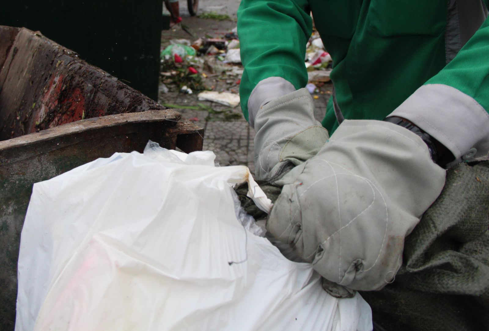 Quá trình thu gom rác thường gặp nhiều vật sắc nhọn, nên công nhân luôn đeo găng tay dày để đảm bảo an toàn