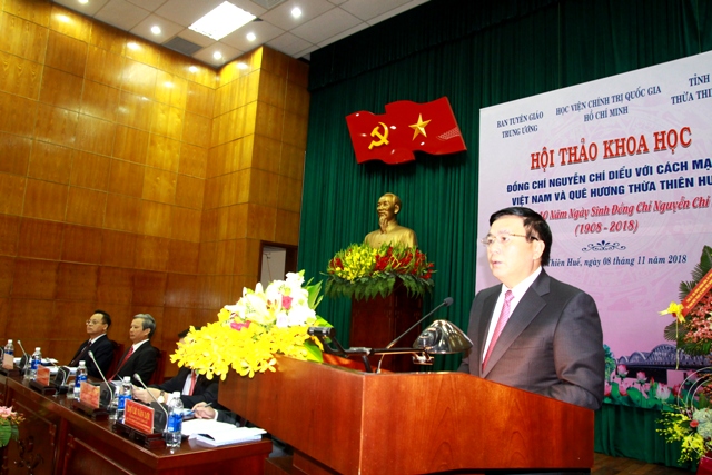 Phát biểu đề dẫn, GS. TS Nguyễn Xuân Thắng, Bí thư Trung ương Đảng, Chủ tịch Hội đồng Lý luận Trung ương, Giám đốc Học viện Chính trị Quốc gia Hồ Chí Minh khẳng định, Hội thảo là hoạt động thiết thực, nhằm ôn lại cuộc đời, sự nghiệp hoạt động cách mạng của đồng chí Nguyễn Chí Diểu, người chiến sĩ cộng sản kiên trung đã phấn đấu và dâng hiến trọn đời mình vì độc lập, tự do cho Tổ quốc, cho hạnh phúc của Nhân dân. Đây cũng là dịp để chúng ta tôn vinh những cống hiến to lớn của đồng chí đối với cách mạng Việt Nam và quê hương Thừa Thiên Huế. Từ hội thảo này, chúng ta càng có ý thức sâu sắc hơn về việc học tập và làm theo tấm gương đạo đức của chủ tịch Hồ Chí Minh; về trách nhiệm tuyên truyền, bồi dưỡng truyền thống cách mạng, tư tưởng và đạo đức, lý tưởng và lối sống cho cán bộ, đảng viên, các tầng lớp Nhân dân, nhất là thế hệ trẻ Việt Nam hôm nay và mai sau.