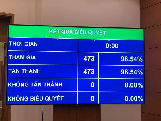 473/473 đại biểu có mặt tại kỳ họp tán thành bầu đồng chí Vương Đình Huệ - Ủy viên Bộ Chính trị, Bí thư Thành ủy Hà Nội giữ chức Chủ tịch Quốc hội, Chủ tịch Hội đồng bầu cử Quốc gia.