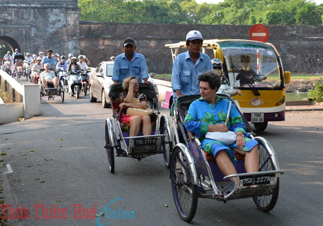 Du khách thăm thú Huế bằng xích lô. Ảnh: M.Quân