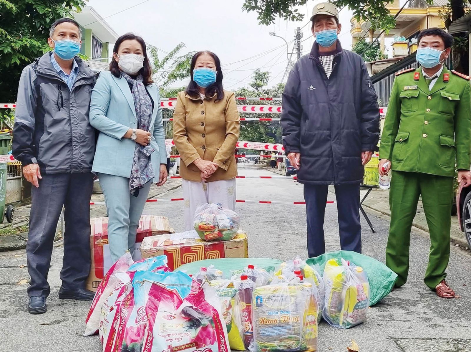 Đại diện Mặt trận TP. Huế chuyển quà đến người dân trong khu phong tỏa