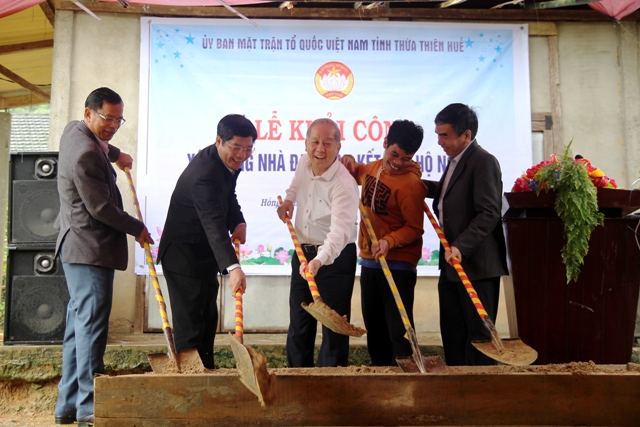Ngay sau lễ phát động, Phó Bí thư Thường trực Tỉnh ủy, Trưởng ban Chỉ đạo giảm nghèo bền vững tỉnh Phan Ngọc Thọ cùng lãnh đạo các huyện, thị, TP. Huế; sở, ban, ngành của tỉnh và huyện A Lưới đã khởi công xây dựng nhà đại đoàn kết cho hộ nghèo tại thôn Đút 2, xã Hồng Kim (A Lưới).