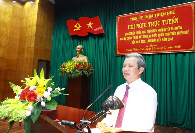 HNN.VN - Sáng 13/1, Thường trực Tỉnh ủy, Ban Thường vụ Tỉnh ủy tổ chức hội nghị trực tuyến toàn tỉnh để quán triệt, triển khai thực hiện Nghị quyết 54 – NQ/TW, ngày 10/12/2019 của Bộ Chính trị về xây dựng và phát triển tỉnh Thừa Thiên Huế đến năm 2030, tầm nhìn đến năm 2045.