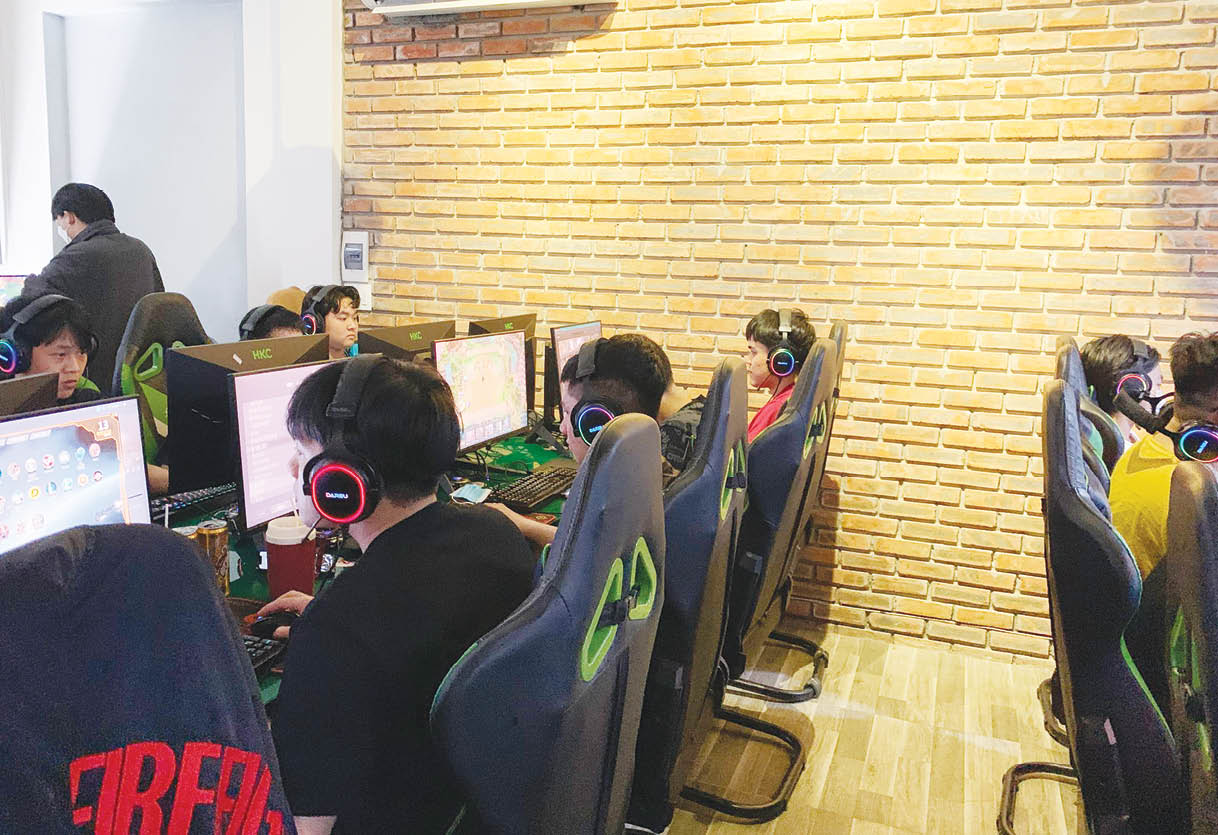 Tại quán internet, giữa các máy ít có khoảng cách, có người không đeo khẩu trang