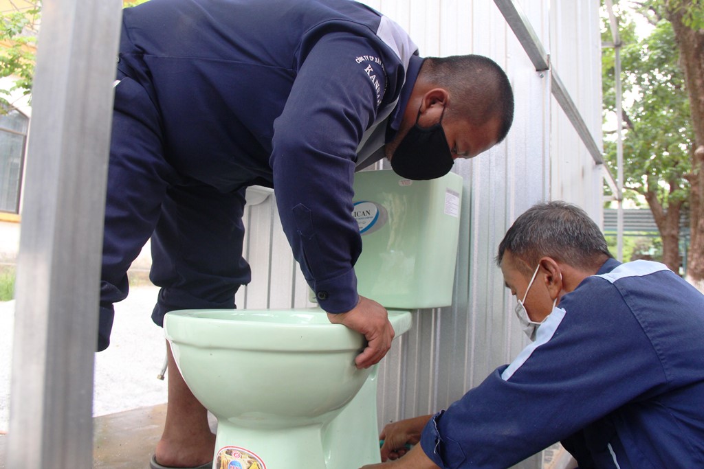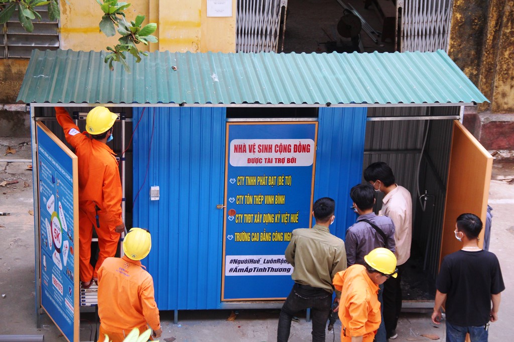 Việc dựng nhà vệ sinh công cộng được gấp rút thực hiện những ngày qua ngay tại Xưởng Cơ khí thuộc Trường CĐ Công nghiệp Huế (77 Nguyễn Huệ, TP. Huế). Một số nhà vệ sinh công cộng đầu tiên đã hoàn thành, dự kiến sẽ trao cho Ban chỉ đạo phòng, chống COVID-19 tỉnh để đơn vị này điều phối đến các khu cách ly, điểm tiếp đón người cách ly trở về.