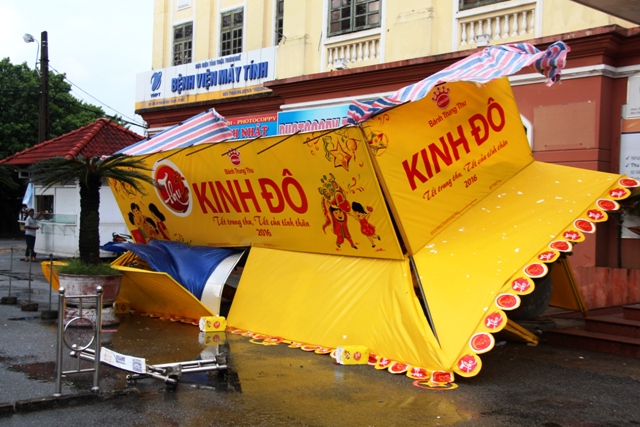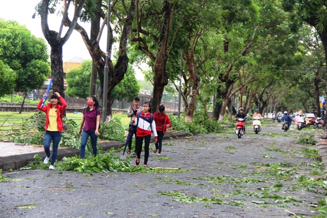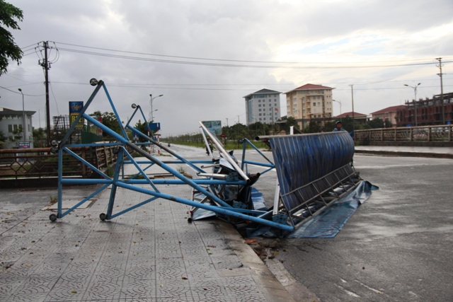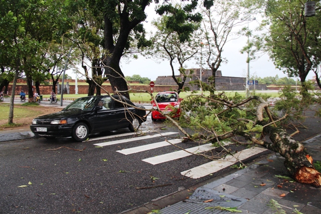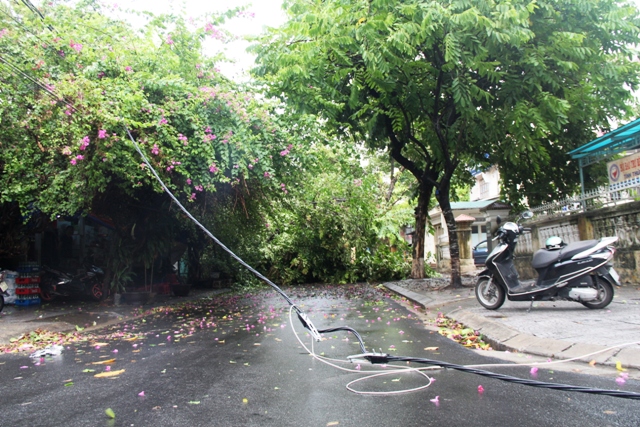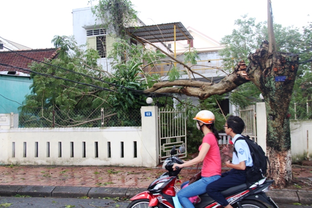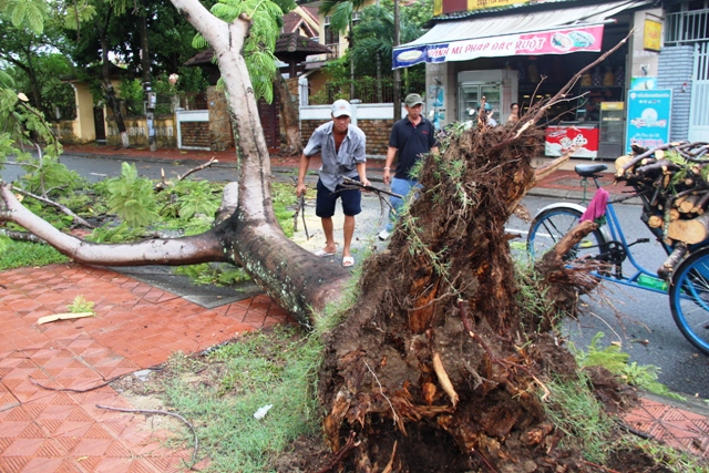 Sáng 13/9 sau khi cơn bão số 4 đi vào đất liền và suy yếu thành áp thấp nhiệt đới, trên nhiều tuyến đường như, Lê Huân, Đặng Thái Thân, 23-8, Phạm Hồng Thái, Tố Hữu, Hà Nội… một số cây xanh đổ nghiêng ngả ra đường, nhiều cây bị bật gốc hoàn toàn. Ngoài ra, hệ thống điện, dây cáp ở một số tuyến đường nói trên cũng bị cây xanh đổ gãy đè xuống đất.