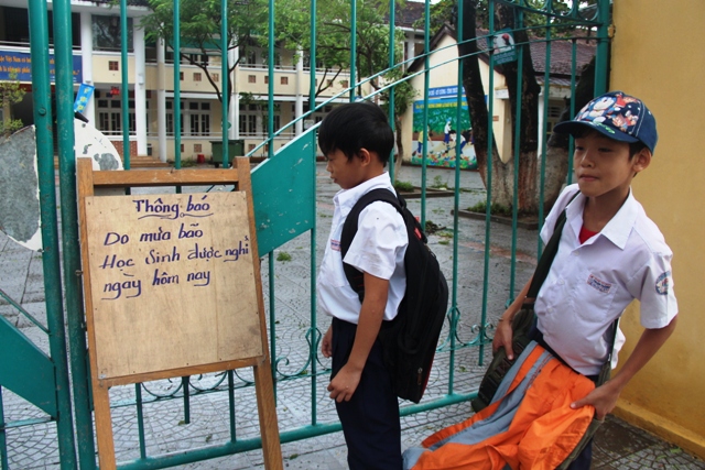Đến khoảng 6g30 sáng, nhiều tuyến đường vẫn vắng người, gió mạnh khiến việc đi lại khó khăn. Nhiều trường học treo bảng cho học sinh nghỉ học. Tại Trường tiểu học Thuận Thành, Trường THCS Chu Văn An, nhiều em được phụ huynh chở đến đành phải chở con về nhà.