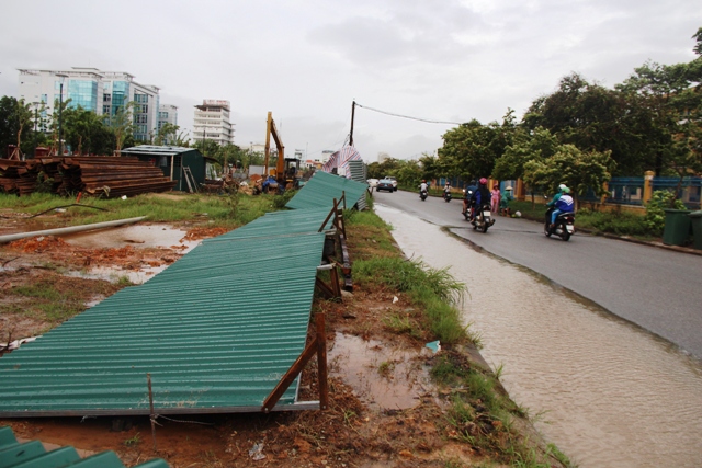 Hệ thống rào chắn các công trình không trụ nổi trước sức quật của mưa gió đêm qua