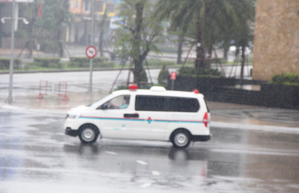Thời điểm này, chỉ có xe công vụ hoặc xe ưu tiện mới di chuyển trên đường, còn lại người dân chủ động ở trong nhà. Trong ảnh, một chiếc xe cứu thương đang làm nhiệm vụ