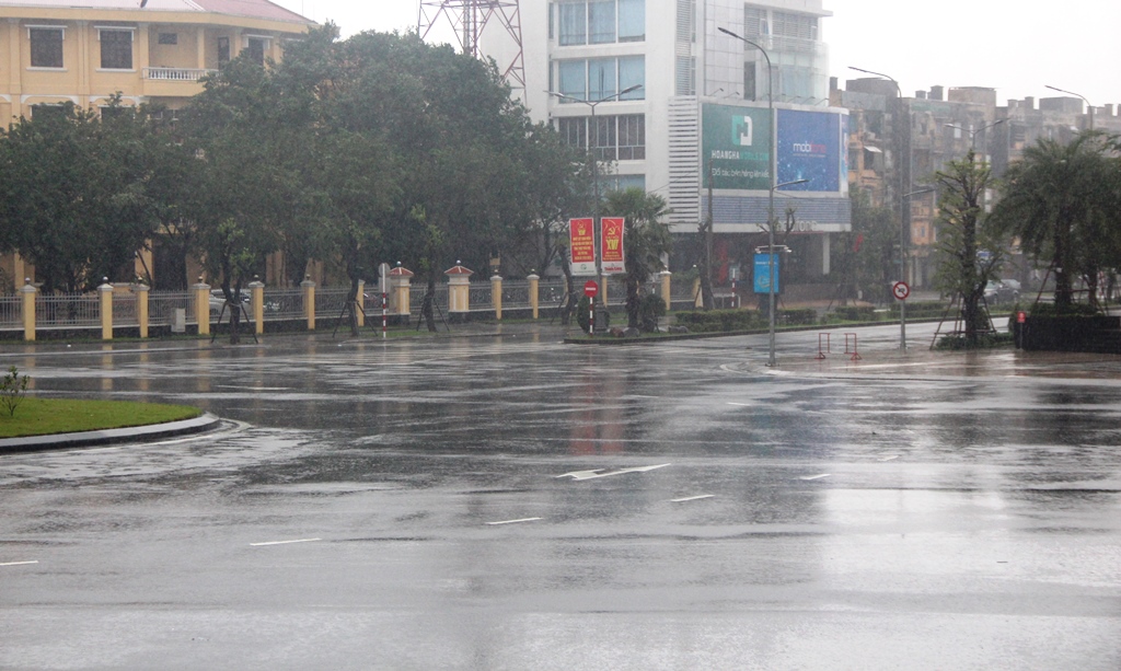 Tuyến đường Lê Huân bên trong nội thành vắng lặng sau yêu cầu cầu của Chủ tịch UBND tỉnh không được ra khỏi nhà sau 12h trưa 14/11