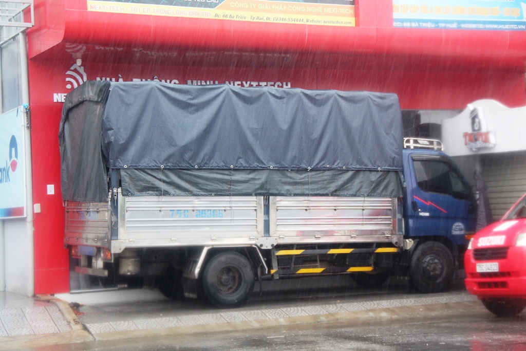 Một vài cửa tiệm dùng xe tải để chắn ngay mặt tiền với hy vọng sẽ không có thiệt hại gì nếu bão đổ bộ