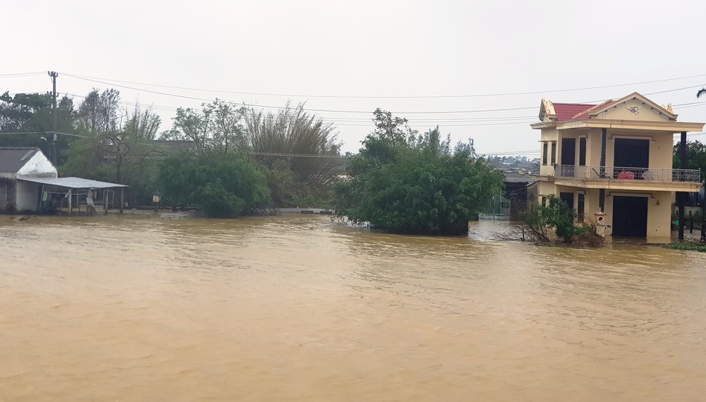 Cũng trong chiều 14/11, nước ở nhiều vùng hạ du sông Hương đang dâng trở lại gây ngập nhiều nhà dân