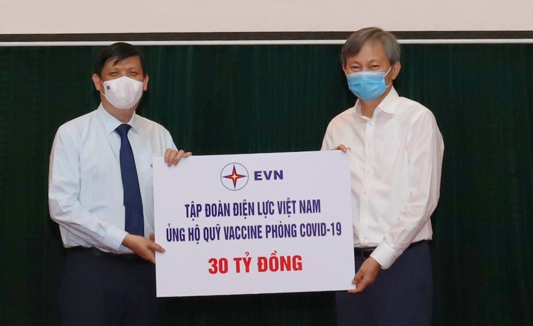 Với vai trò, trách nhiệm tiên phong của doanh nghiệp Nhà nước trong thực hiện nhiệm vụ chính trị - xã hội đối với cộng đồng trong bối cảnh đại dịch COVID-19 đang phức tạp, EVN quyết định ủng hộ Quỹ vaccine phòng COVID-19 số tiền 400 tỷ đồng (gồm cả 30 tỷ đồng EVN đã trao tặng tại Bộ Y tế vào ngày 28/5/2021).