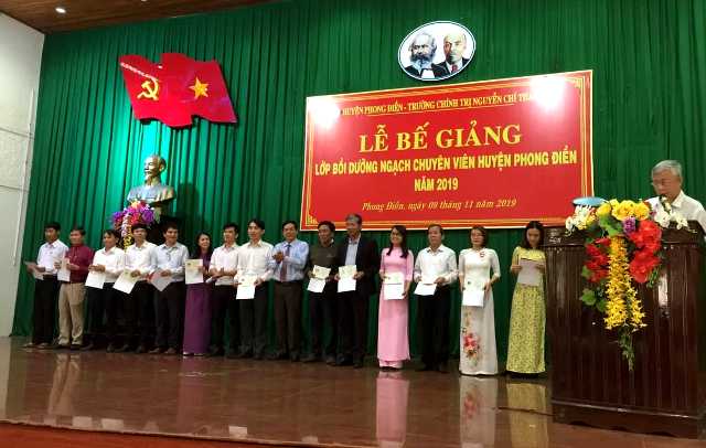 Sau thời gian học tập (từ 29/6 đến nay), 137 học viên là cán bộ công chức, viên chức trên địa bàn huyện Phong Điền đã hoàn thành chương trình đề ra. Kết quả, 100% học viên được Trường Chính trị Nguyễn Chí Thanh cấp chứng chỉ; trong đó, có 14 học viên đạt loại xuất sắc.